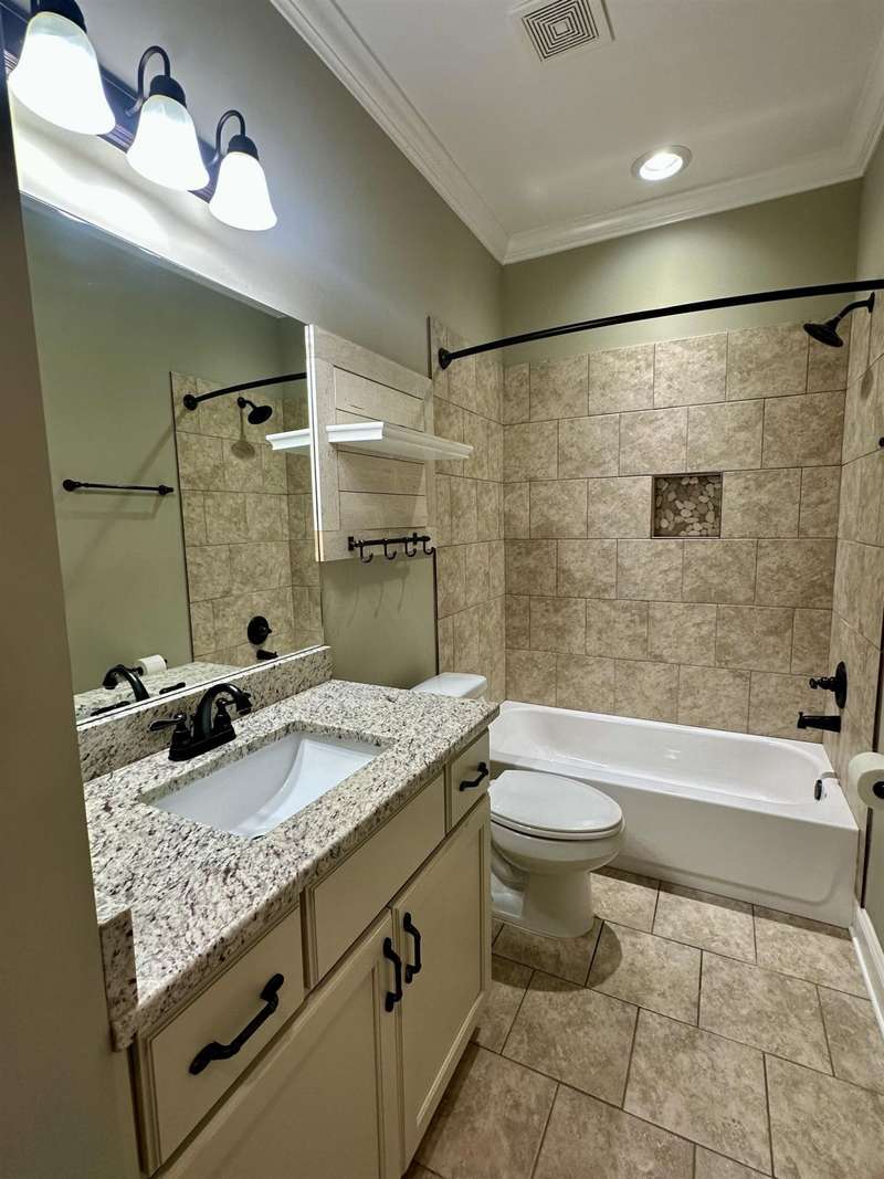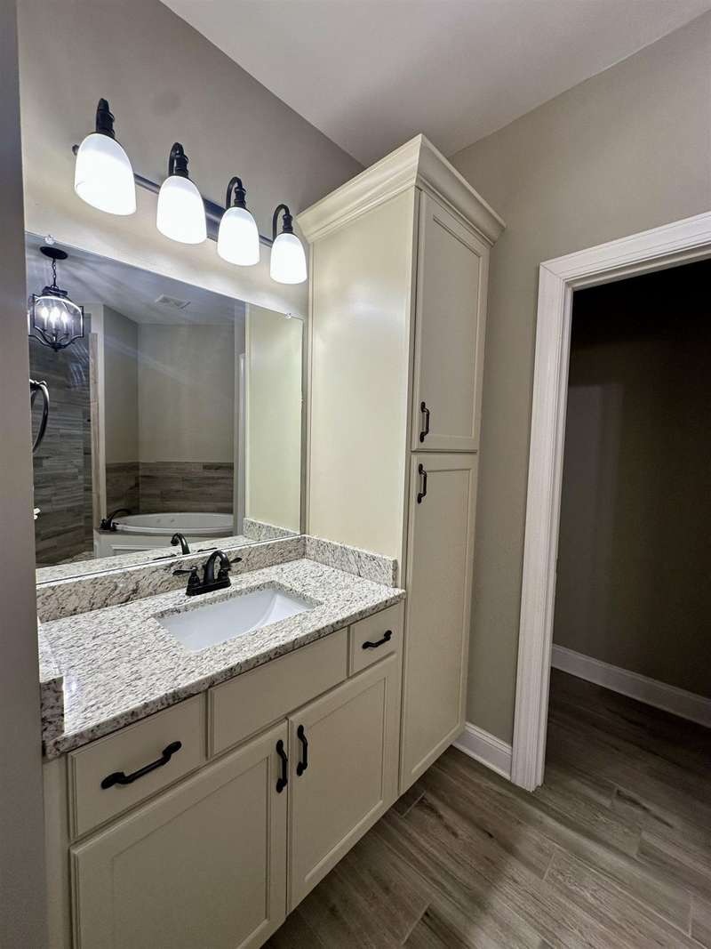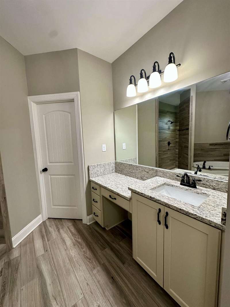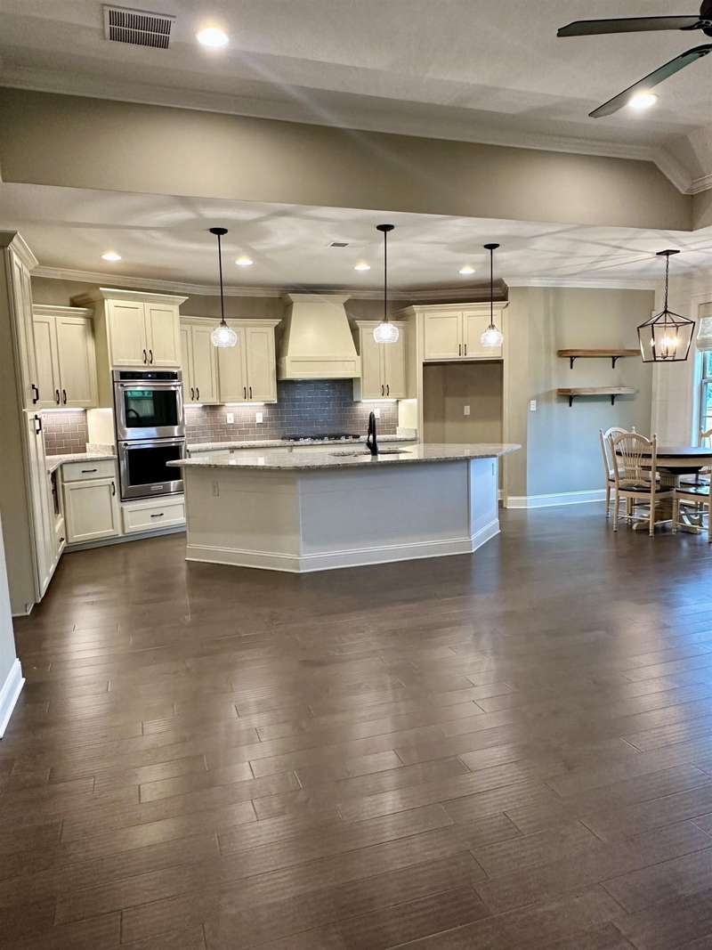 Beautifully landscaped Corner Lot Home Located in Sought After Castle Ridge with Award Winning DeSoto Central Schools. This Stunning Home has tons of Custom Features. This Home is a split Plan with 4 bedrooms plus a Huge Finished Bonus Room. Gorgeous Hardwood flooring, Open Kitchen Loaded with Custom Cabinetry, Pantry with slid-outs & Lazy Susan, Granite, LARGE Island. All Kitchen Aide High End Stainless Appliances including a 5 burner Gas Cooktop, Double Ovens & Dishwasher. Tucked away is the Primary Suite with Master Bath including an extra Large Custom Closet. No Door Walk-In Shower with Separate Tub. All with Decorative Tile. Large Screened Patio plus lots of extra concrete for Outdoor Living & Stained Privacy Fence