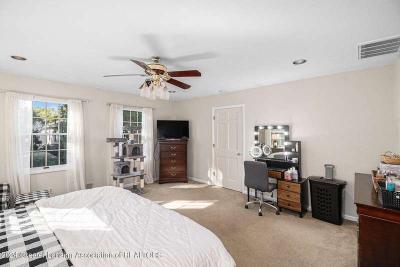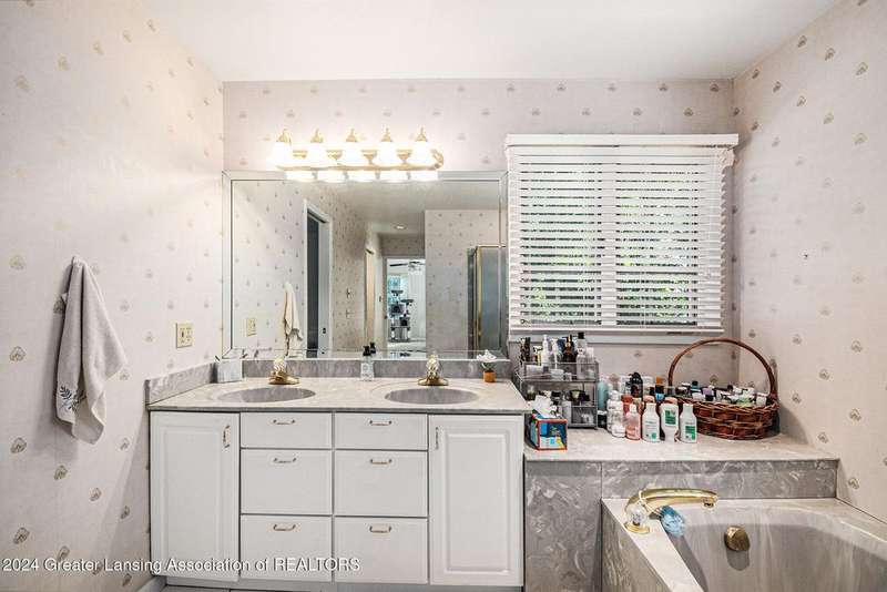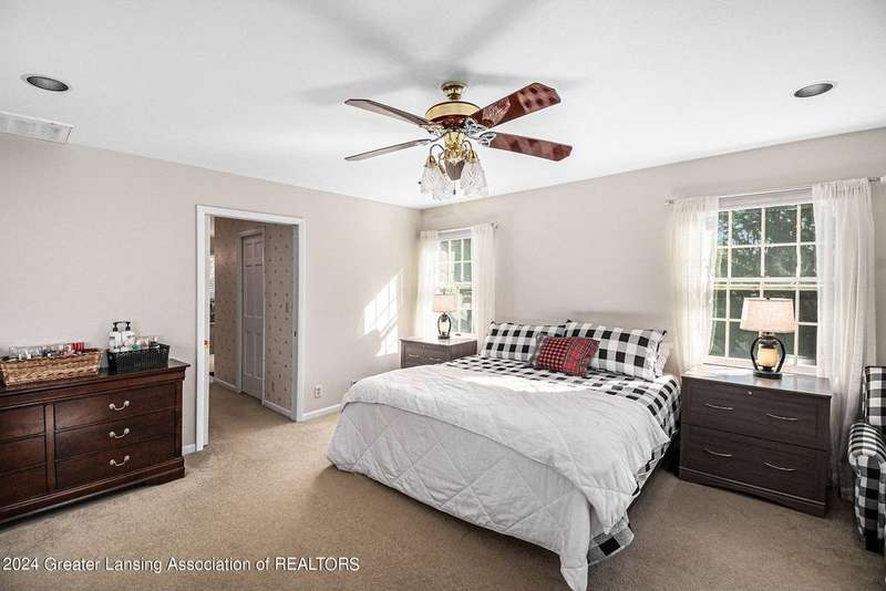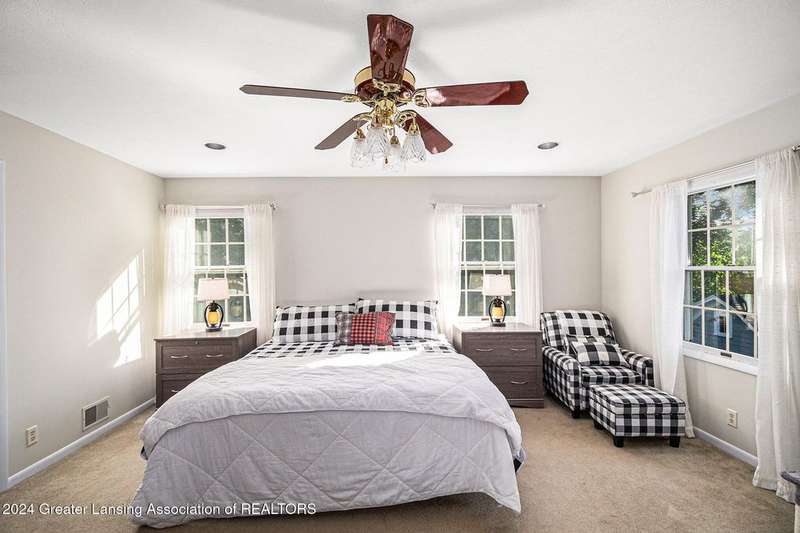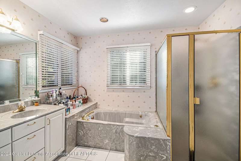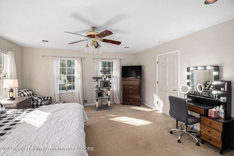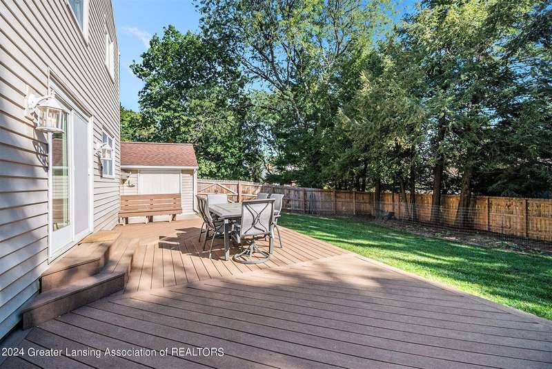 Welcome to this beautifully maintained two-story colonial, offering 4 bedrooms, 3 full baths, and 2 half baths. The home features two living rooms, one with a cozy fireplace and the other equipped with a wet bar, perfect for entertaining. Recent upgrades include new luxury vinyl flooring in the family room, updated furnace for energy efficiency and updated bathrooms. Boasting two primary suites, each with an ensuite bath, and one featuring a relaxing jet tub. The partially finished basement provides additional living space and ample storage and is meticulously clean! Outside, enjoy the large, low-maintenance Trex deck overlooking the private backyard. With spacious bedrooms and an immaculate interior, this home is move-in ready and ideal for those seeking a comfortable and stylish home. living space in a quiet, desirable neighborhood.