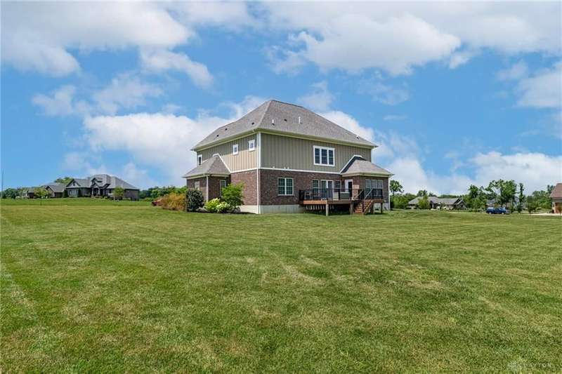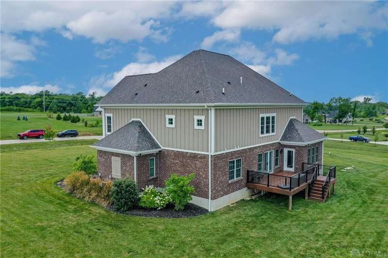 The seller is offering a $4500 incentive towards closing costs or used at buyers discretion. Nestled on 2 private acres with a beautiful wooded tree line, this exceptional custom home, in Springboro school district, offers luxury, space, and flexibility in every detail. With 4 spacious bedrooms and 4.5 bathrooms, this home is designed to meet the needs of multi-generational living, entertaining, and everyday comfort.The home features two luxurious primary suites — one conveniently located on the main level, perfect for guests or single-level living, and the second upstairs with direct access to a large second-floor laundry room. Both suites include spa-like bathrooms with over-sized walk-in showers, dual vanities, and massive walk-in closets.Two additional bedrooms share a well-appointed Jack & Jill bathroom, each with its own private vanity. A versatile bonus room with an attached full bath could easily serve as a fifth bedroom, game room, or second home office. An additional office is located on the main level for remote work or quiet focus.The open-concept living space features a large great room flowing seamlessly into the gourmet kitchen, complete with a huge center island/bar, built-in range, two wall ovens, and a massive walk-in pantry for optimal storage.With two laundry rooms — one on each floor — daily routines are made easy. The full basement is partially finished, offering endless potential for expansionThis home checks all the boxes for space, comfort, and style — all set in a private, wooded setting.