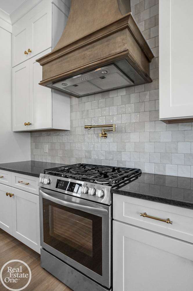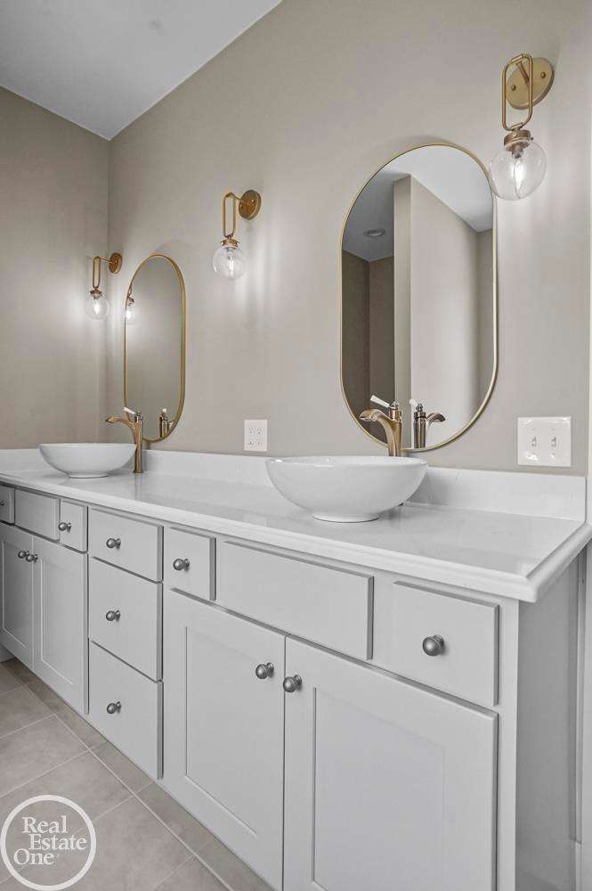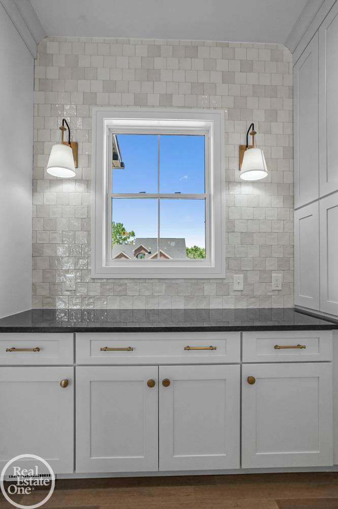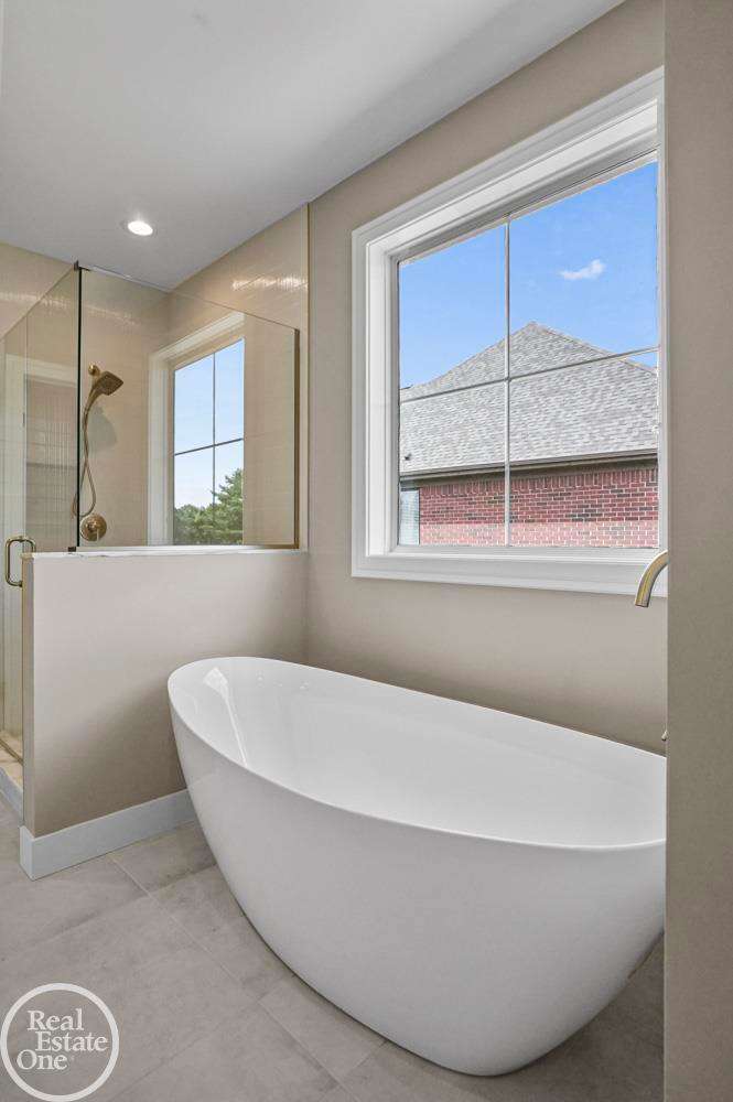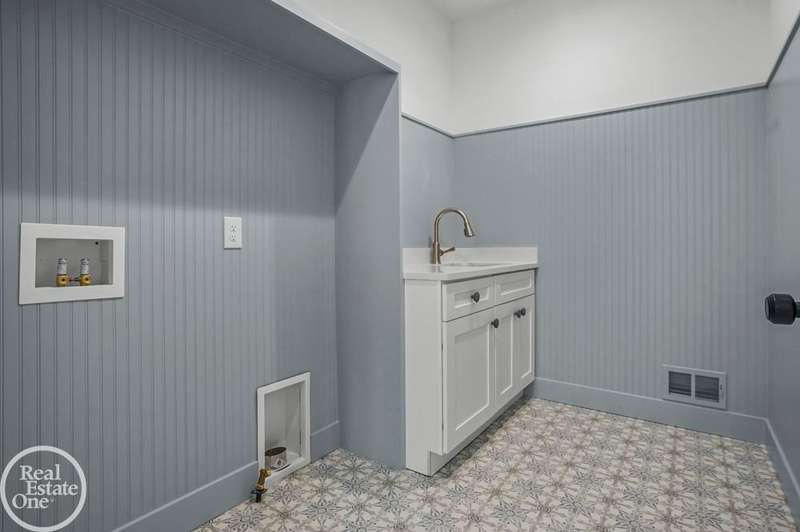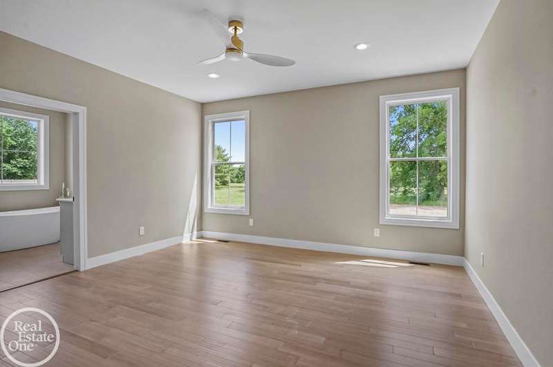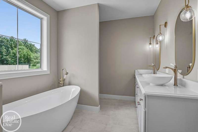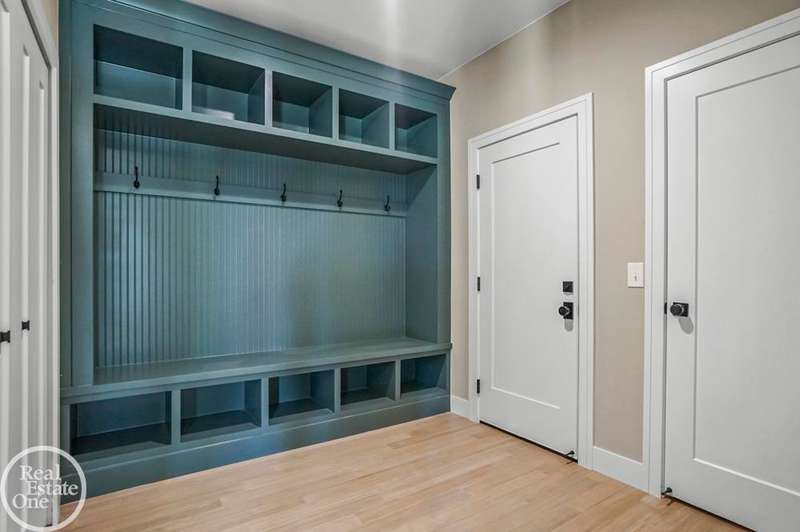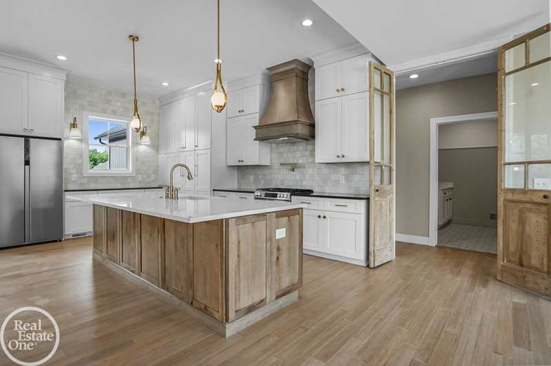 Stunning New Construction Split Ranch From the moment you arrive, you'll be impressed by the gorgeous stone accents, inviting front porch, elegant double wood doors, and stately columns. Inside, an open and airy floor plan combines elegance and comfort. The chef's kitchen is a true showstopper--featuring champagne bronze fixtures, cabinets to the ceiling with crown molding, a massive quartz island with sink, ceramic tile backsplash, pot filler at the stove, and abundant soft-close cabinetry. Don't miss the cleverly concealed walk-in pantry with a "Costco door" to the garage for effortless grocery unloading. The great room is flooded with natural light from large windows and offers soaring ceilings, recessed lighting, a ceiling fan, warm wood floors, and a gas fireplace. Unique 100-year-old antique French doors lead to the primary suite, laundry, and mudroom. The mudroom features a custom cubby, while the laundry boasts porcelain tile floors, quartz counters, a sink, and cabinetry. The primary suite offers recessed lighting, a ceiling fan, and a spa-like bath with quartz counters, dual sinks, porcelain tile flooring, a Euro glass shower, a soaking tub, towel warmer, and an expansive walk-in closet. Two additional bedrooms and a stylish main bath with black-and-gold fixtures are located on the opposite side of the great room. The lower level includes a large basement with egress window, high-efficiency furnace, 50-gallon water heater, and rough-in for a third full bath. Outside, enjoy a spacious backyard with exposed aggregate patio and views of Lake St. Clair. This home is complete and move-in ready--don't miss your chance to own this exceptional property!