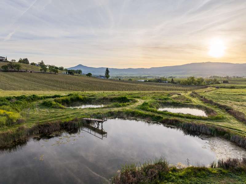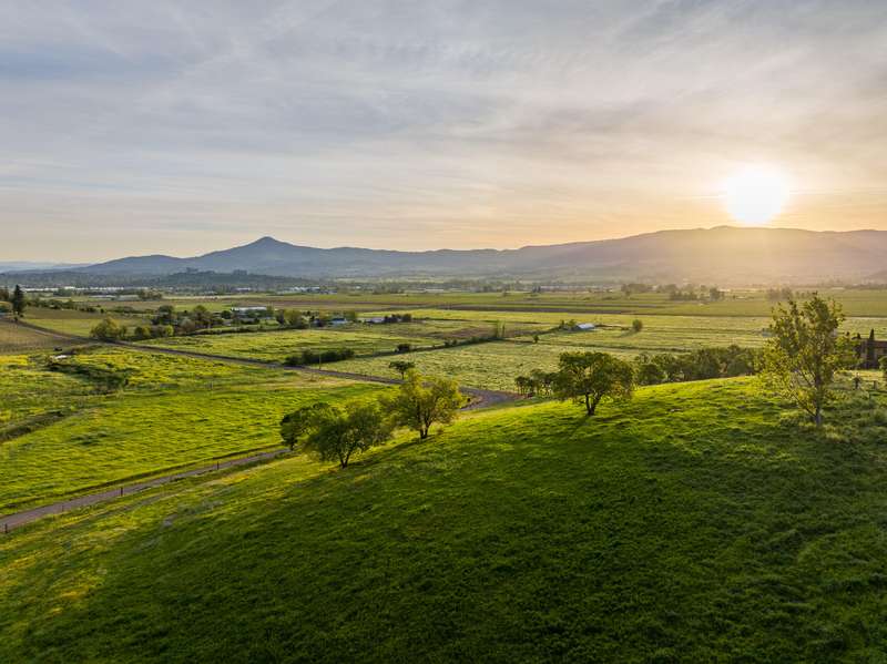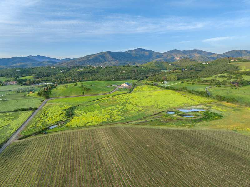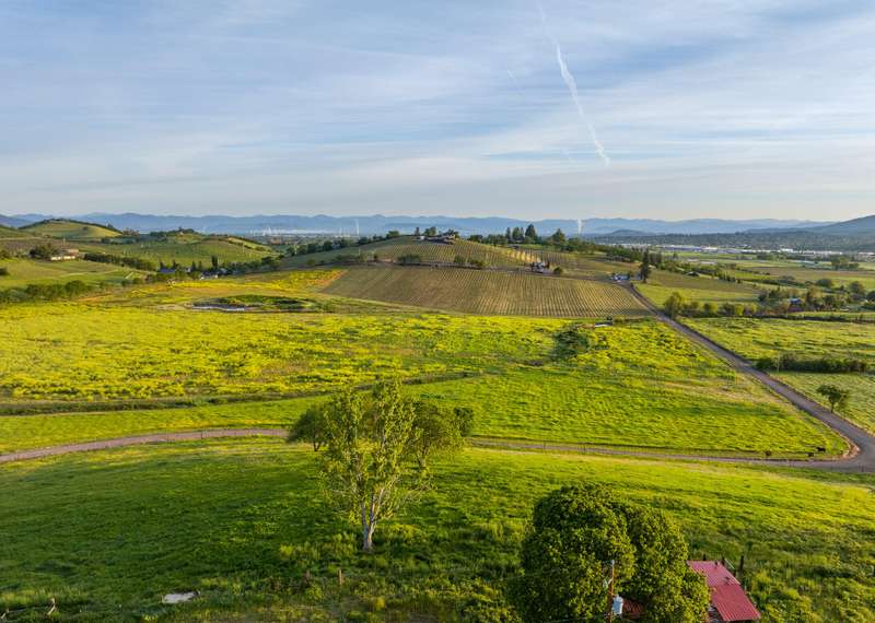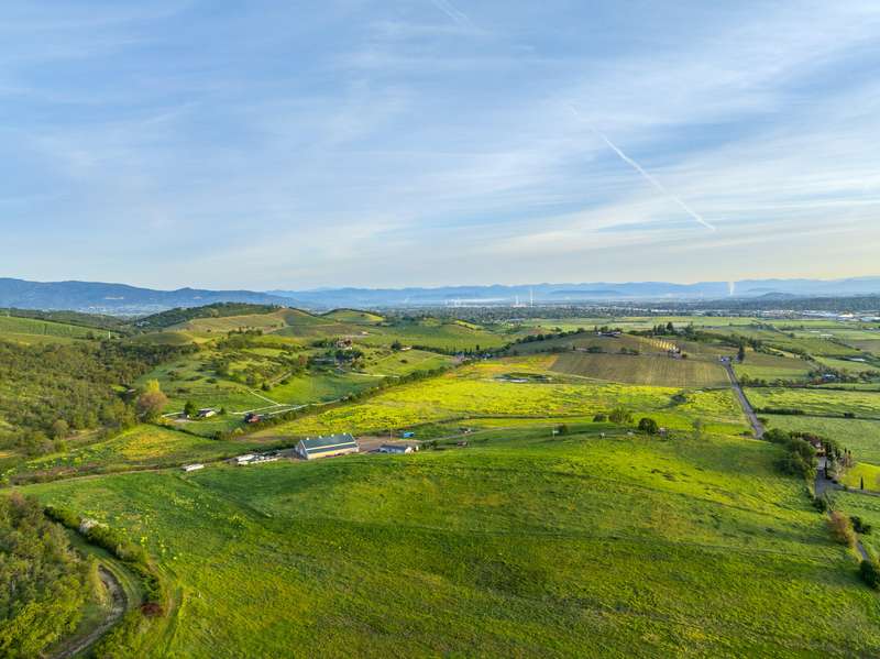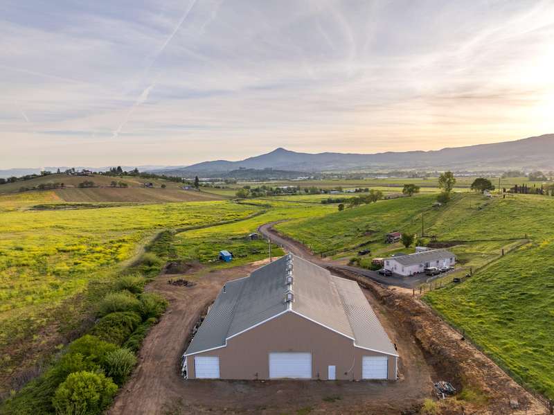 Located in the sought-after Southwest Medford foothills, Carpenter Hill Ranch offers 114 acres of gently rolling ground with panoramic views across the Rogue Valley—an exceptional setting for a future estate home. With 87.5 acres of irrigation rights and a mix of open pasture and vineyard, the property blends natural beauty with agricultural utility. Several premier building sites overlook the valley and mountains beyond, creating a rare opportunity for a signature residence in a serene rural setting. The 12-acre vineyard features a mix of varietals and includes 7 acres prepped for expansion. A 12,000 SF steel-framed shop (built 2002) includes a half bath and 200-amp power. The gravity-pressurized irrigation system includes risers, center pivot, and three bulges for water storage. Versatile soils support grazing, hay, or expanded vineyard. A well-kept 3-bed, 2-bath manufactured home serves as a ranch manager's residence while your vision takes shape.