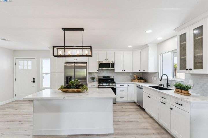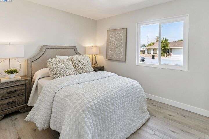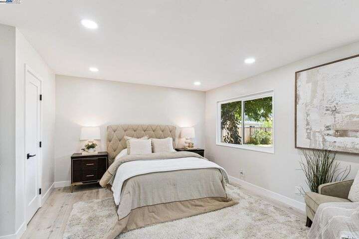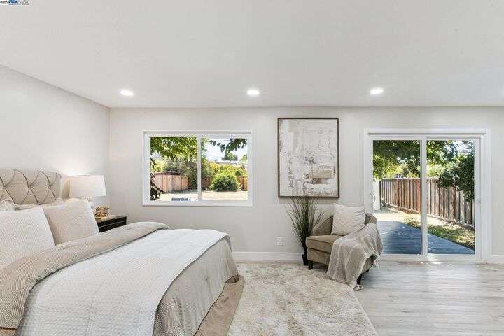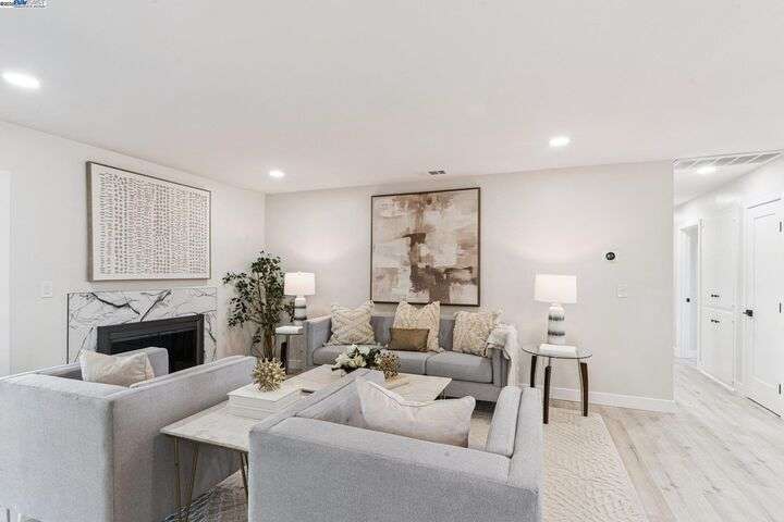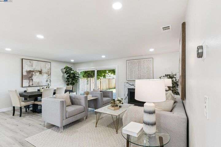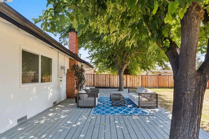 Set on a generous lot in Fremont’s sought-after Irvington neighborhood, North-west facing, this beautifully updated home blends modern design with everyday comfort and a private backyard retreat. The light-filled open floor plan features a gourmet kitchen with quartz countertops, a spacious island, custom cabinetry, and stainless steel appliances. The inviting living and dining areas include a cozy fireplace and open through a 10-ft sliding glass door to a large deck overlooking a lush backyard with mature trees—perfect for relaxing or entertaining. Both bathrooms have been tastefully remodeled with designer tile, sleek fixtures, and thoughtful details. Recent upgrades include a newer roof and gutters, dual-pane windows, smooth wall finishes, stylish doors and trim, a new underground sewer line with lifetime warranty, and newer AC unit and tankless water heater. Conveniently located near top-rated schools, shopping, dining, and major commuter routes, this move-in ready home offers the ideal combination of location, quality, and charm. A rare opportunity you won’t want to miss!