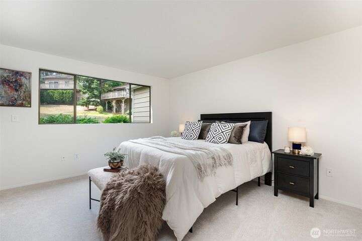 Whether you're a first time home buyer, are downsizing, or adding to your investment portfolio, this spacious, single-story home located in the highly sought-after Meadows community near Microsoft checks all the boxes! This well-maintained 3 bed, 2 full bath residence features newer furnace & water heater along w/new carpet & fresh paint throughout. Enjoy the spacious, layout featuring light & bright great room w/vaulted ceiling, fireplace, & large deck perfect for outdoor entertaining. Low cost HOA covers landscaping & community amenities including sparkling pool, clubhouse, tennis courts, w/RV or boat parking available! Minutes to Microsoft, trails, parks & light rail. Pre-inspected and home warranty for peace of mind - hurry home!