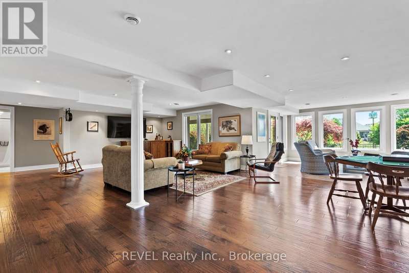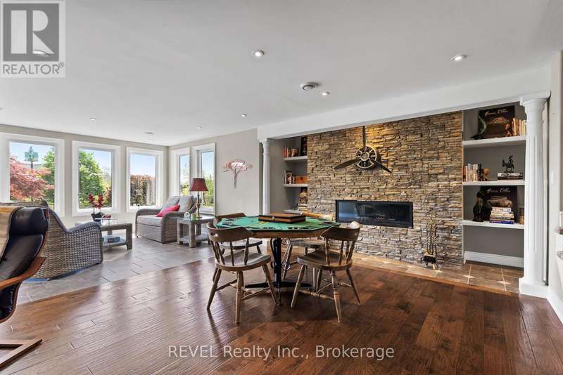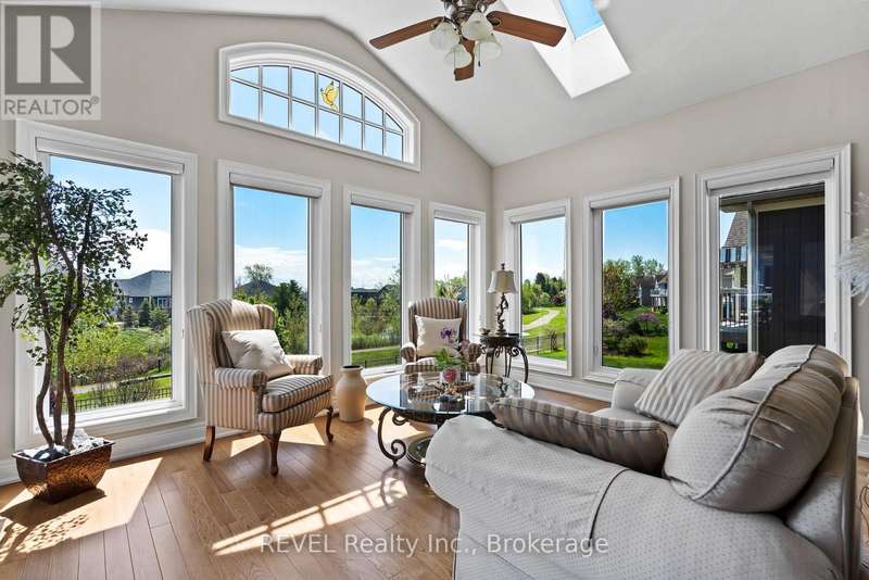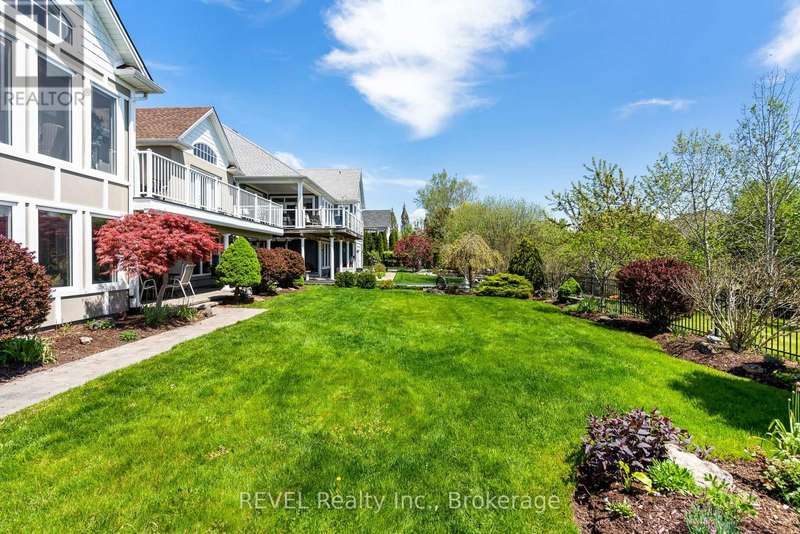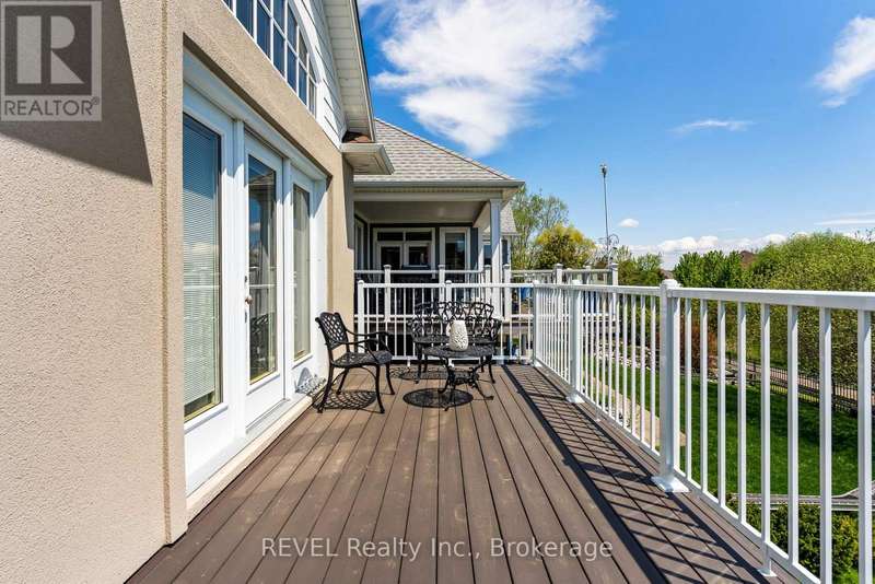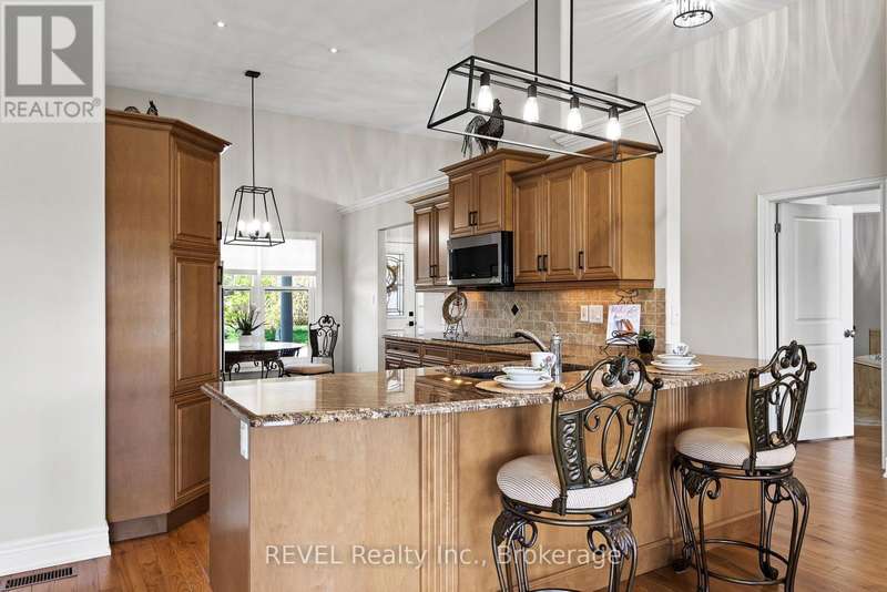 What you've been waiting for!! Rarely available, sought after interior bungalow with walk-out basement! The highly desired community of Ridgeway By The Lake offers serene living with all the amenities and a neighbourhood that boasts pride of ownership at every turn. Freshly painted inside and out, this 3 bedroom home has it all. Main floor primary bedroom with 5 piece ensuite bath, his and hers closets, cathedral ceiling and walk-out to the back deck. The front bedroom can also be used as an office, or guest bedroom and conveniently has a full 3 piece bath just outside it's door. The kitchen is ready for entertaining, with built in appliances including a new microwave and new dishwasher, granite countertops, breakfast bar and breakfast sitting area. Your open concept main floor features a formal dining area, cozy living room with gas fireplace, sunroom with skylight, multiple access points to the back deck, and a built-in wifi enabled sound system! Additionally you have central-vac for easy cleaning, potlights throughout and direct entry from the garage to your functional mudroom/main floor laundry room. And that's all just the main level! Downstairs you have a fully finished basement set up with all the potential for multi generational living, or the perfect space to relax and unwind. Complete with a bedroom, full bathroom, separate laundry, second gas fireplace, separate entrance and potential for a kitchen, it truly checks all the boxes. Open the door and walk-out to your covered stone patio area (2024) where you can take in and enjoy the peacefulness of no rear neighbours. Backing onto a ravine area, perfect for evening strolls, this home is one of kind! (id:7434)