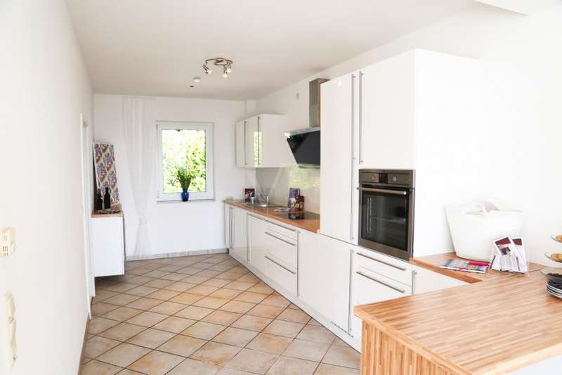This spacious house for the whole family is located in a quiet residential street in a prime location in Kelkheim - Ruppertshain. There is space for your car in the large carport right next to the house. From here, you can easily carry your shopping into the house at ground level. There is plenty of space for up to two cars in the carport. With four bedrooms, two bathrooms plus guest WC and a dry cellar, the house offers plenty of space - for example for your family with two to a maximum of three children. Living and working under one roof is also possible. A spacious hallway welcomes you on the first floor. The large, open-plan living/dining area boasts a ceramic stove, floor-to-ceiling windows and plenty of light in the living room. From the as-new, modern fitted kitchen, you even have a distant view to the south. The view is spectacular when you step out onto the spacious balcony from the living room. Enjoy your evening here in summer and let your gaze wander over the hilly landscape into the distance. In good weather, you can see the Frankfurt skyline and as far as the Odenwald. Here you can experience pure relaxation. The bedrooms with the two bathrooms are located on the lower floor. Depending on your requirements, the bedroom/playroom and study can be divided up differently. The rooms overlooking the garden all have floor-to-ceiling windows, allowing easy access to the garden. The green area is beautifully ingrown and fenced, so children can play here without any worries. The recreational value is great. Start your sporting activities such as jogging, cycling or hiking in the nearby forest and nature reserve directly from home. At the same time, you are well connected to the Rhine-Main region. Königstein can be reached by car in 7 minutes, Kronberg in 15 minutes and Frankfurt, the airport and Wiesbaden in 30 minutes. The owners have lovingly maintained the house and garden and are looking forward to long-term tenants who will appreciate the property just as much. This property is ideal for families with up to two children, couples and freelancers. The house is rented unfurnished. Have we piqued your interest? Then we look forward to hearing from you.