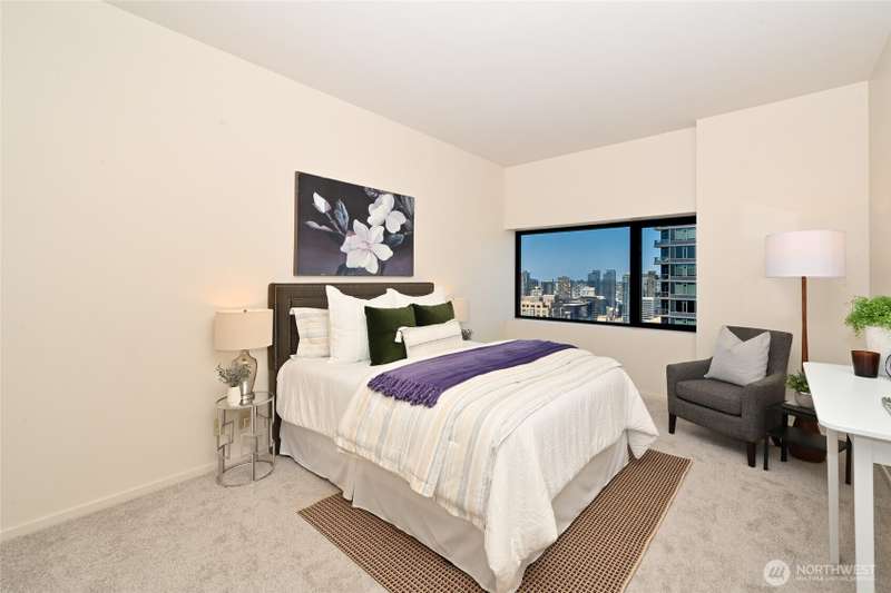 Experience elevated urban living in this coveted NE corner 2-bedroom, 2-bath home at First Hill Plaza—one of Seattle’s premier full-service buildings. With abundant natural light offering panoramic city, mountain, and water views, this home also features a rare private sauna, a spacious lanai & brand-new luxury carpet. The open-concept layout provides ideal separation between bedrooms, perfect for privacy, guests or in home office. First Hill Plaza offers 24-hour concierge, indoor rooftop pool, spa, newly renovated courtyard, tennis court, gym, and secure parking. Unique opportunity to own a private retreat in a landmark address just minutes from downtown, Capitol Hill, and the medical corridor.