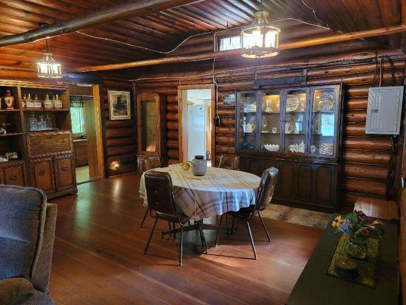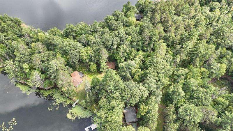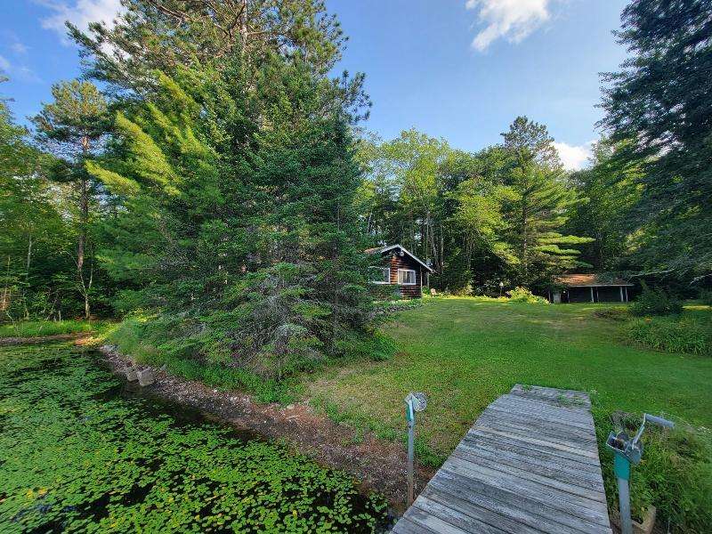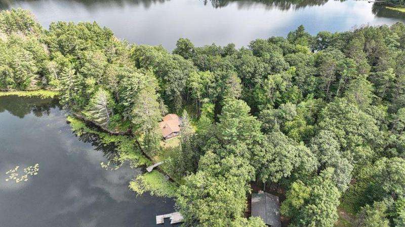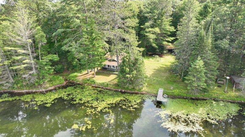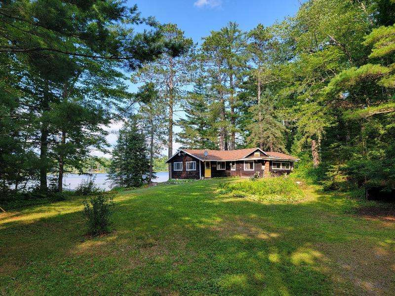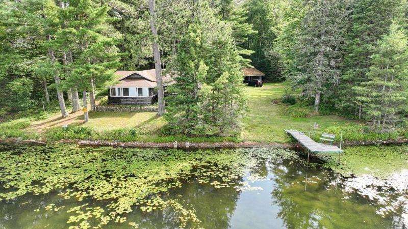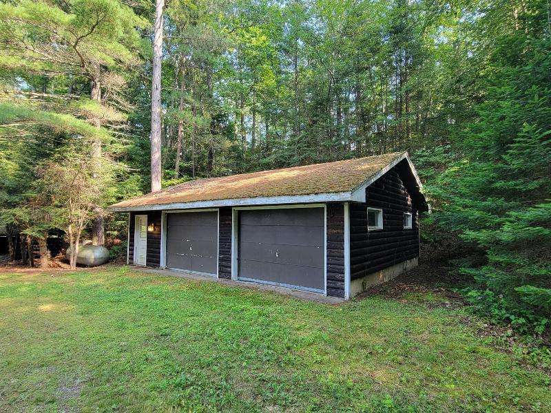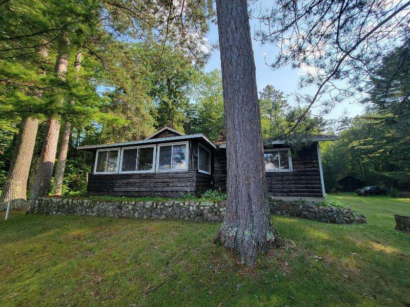 A Rustic Log Cabin in a Peaceful Picturesque 3.95 Acre Wooded Setting on Bills Lake west of Minocqua. This Quaint Property property features 110' of lake frontage with dock, a detached 2.5 car garage, & a detached 2 car garage for plenty of toy or boat storage. The cozy cabin has a list of amenties which include a log cathedral great room w/fieldstone fireplace, a freestanding gas fireplace, 2 bedrooms, full bath, and a 3 season lakeside room to enjoy this great view. The property has been in the same family for many years & needs a little TLC, but what a palette to work with.
