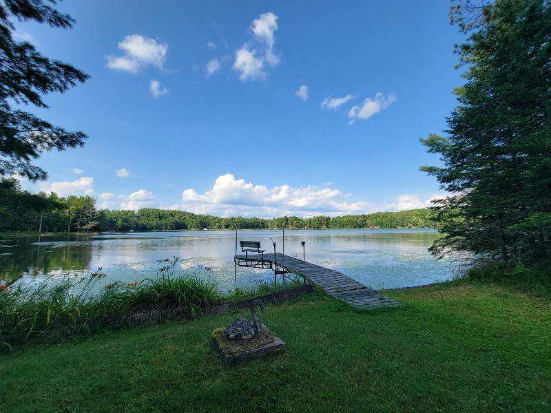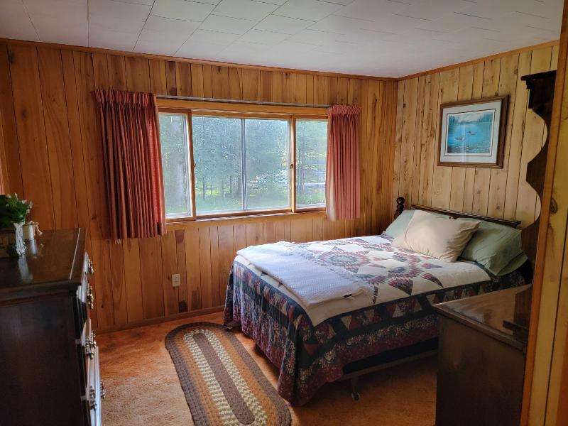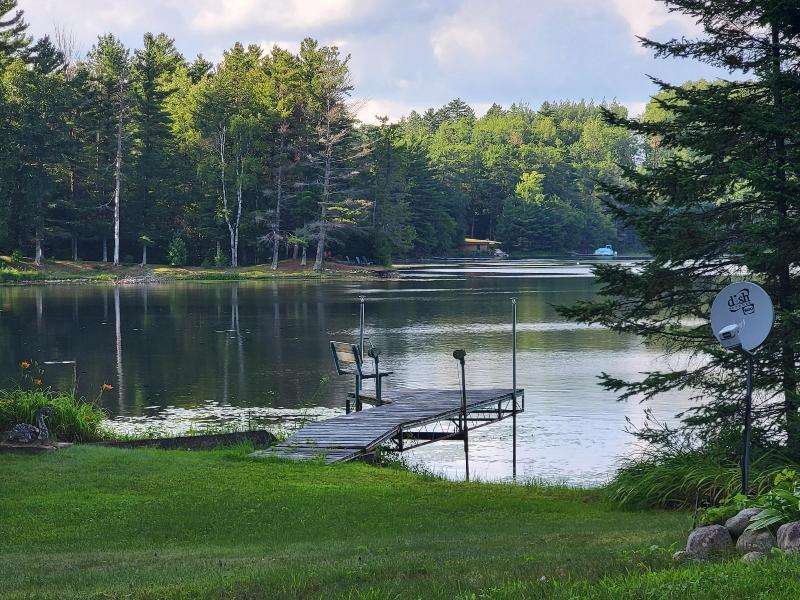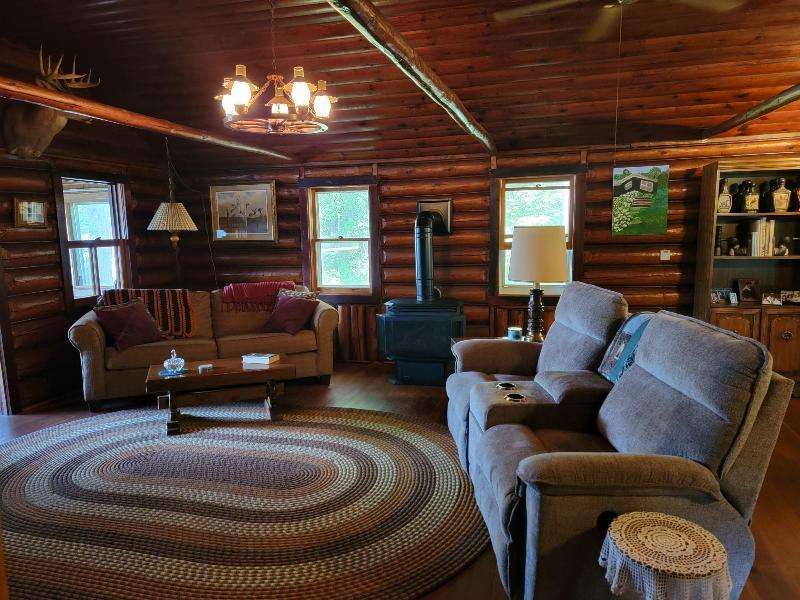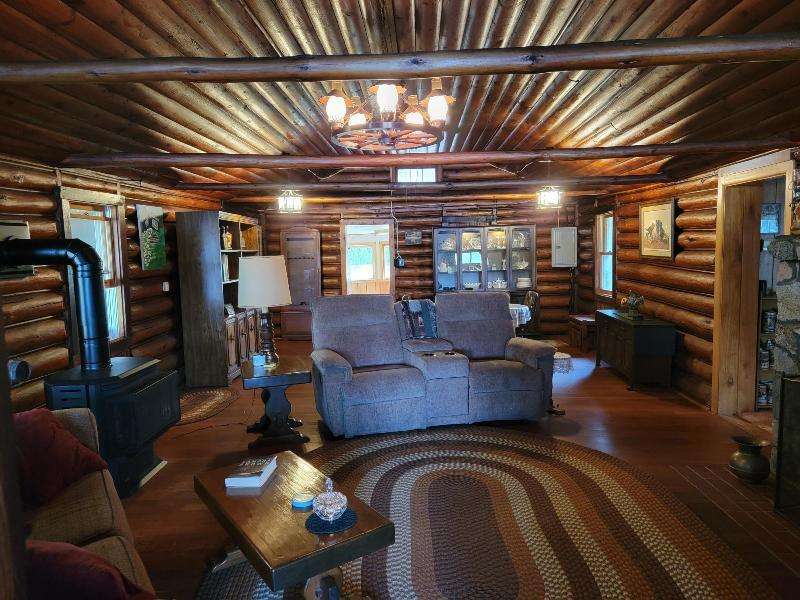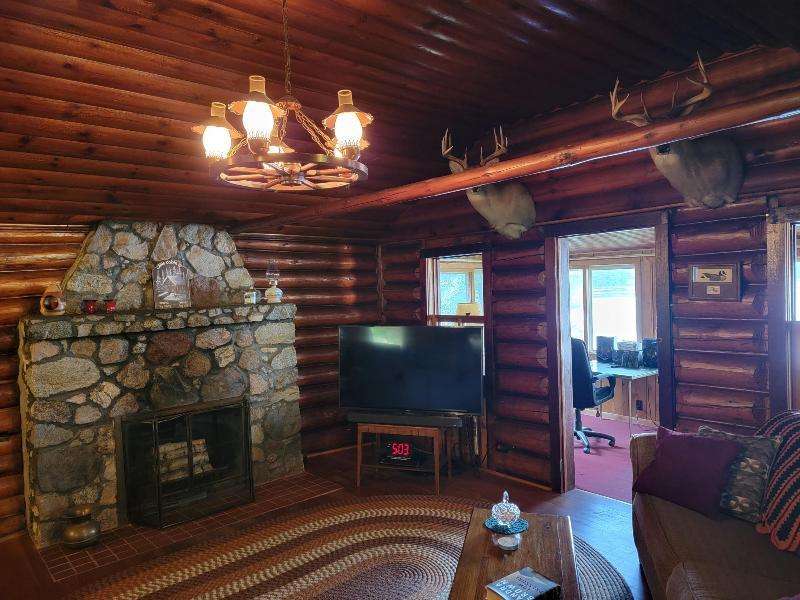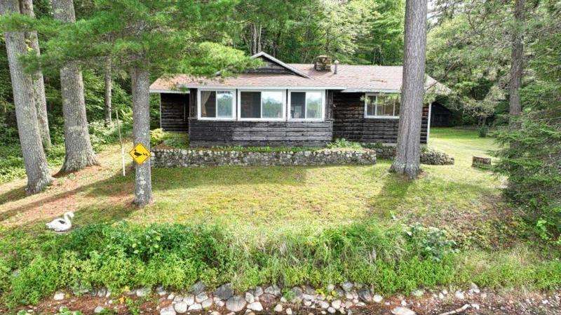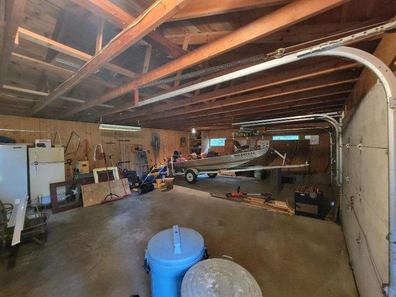 A Rustic Log Cabin in a Peaceful Picturesque 3.95 Acre Wooded Setting on Bills Lake west of Minocqua. This Quaint Property property features 110' of lake frontage with dock, a detached 2.5 car garage, & a detached 2 car garage for plenty of toy or boat storage. The cozy cabin has a list of amenties which include a log cathedral great room w/fieldstone fireplace, a freestanding gas fireplace, 2 bedrooms, full bath, and a 3 season lakeside room to enjoy this great view. The property has been in the same family for many years & needs a little TLC, but what a palette to work with.