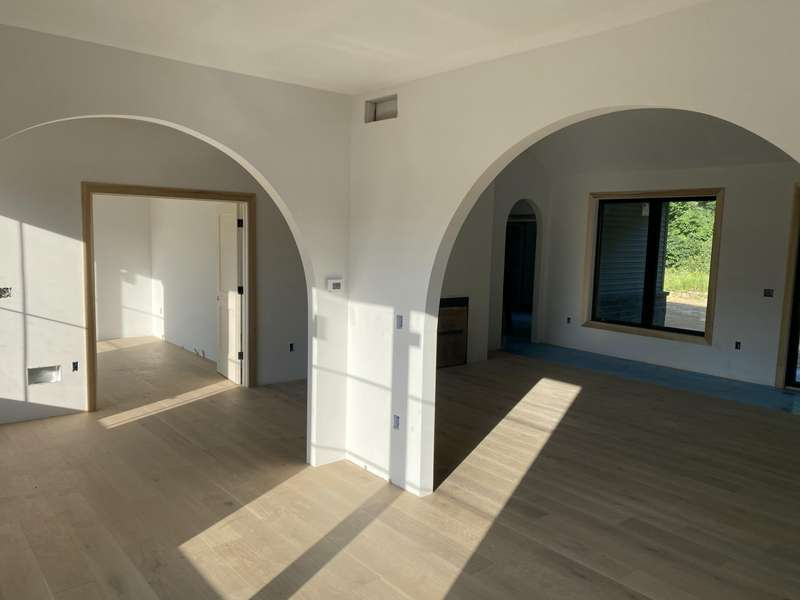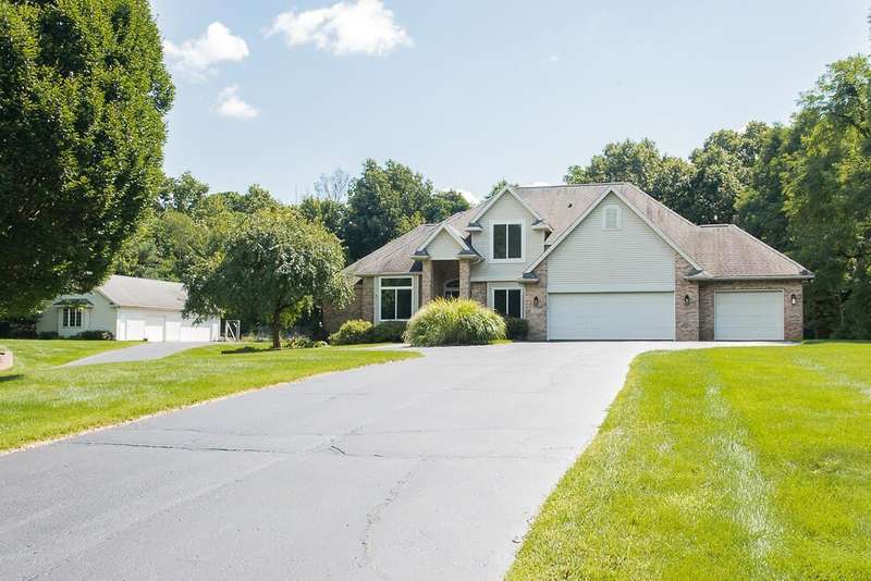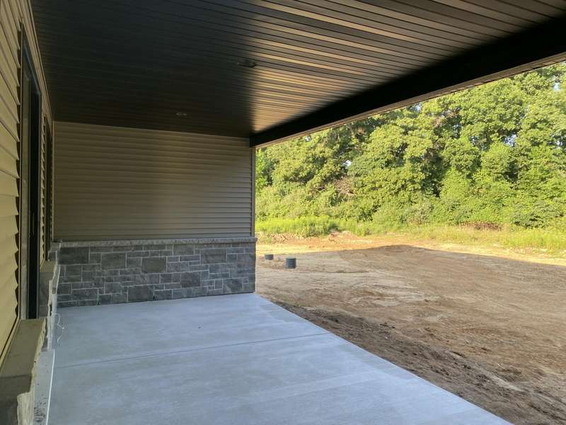 Step into luxury with this beautiful, modern 3-bedroom, 2.5-bath ranch. Natural light floods the main floor thanks to the 9' ceilings & oversized windows. The stunning great room is highlighted by a vaulted ceiling, a stone fireplace, & European Oak hardwood flooring. Extend your living space outdoors with a 340sqft covered patio, capturing sunset views. The gourmet chef's kitchen is equipped with a 4x10 center island with snack bar, a coffee nook, a walk in pantry, & a formal dining area. Discover the convenience of a main-floor laundry close to the primary suite featuring oversized tile shower, double vanity with quartz counters plus walk-in-closet. Two additional spacious main flr bedrooms with great closet space plus one with private half bath. Convenient office completes main level . Wonderful potential for future living space in lower daylight level, including plumbing for additional bathroom. Finished (drywalled & painted) 3 car garage with plenty of additional storage space in the attic above.
