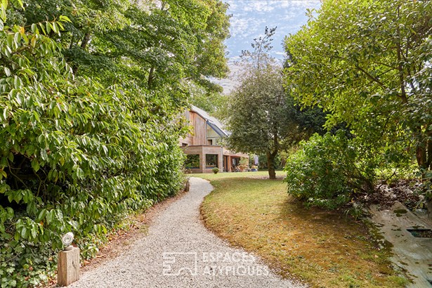 Located a few minutes from Caen and the beaches of the Cote de Nacre, this magnificent 250 sqm house, designed by an architect in 2006, has been discreetly placed in a wooded and privileged environment of approximately 3600 sqm, sheltered from view. The entrance with cloakroom reveals a living room with an enveloping and warm atmosphere, easily communicating with the outdoor space thanks to the large south-west-facing openings that punctuate the facade. This central island invites you to share convivial moments around the dining room, by the fireplace or in the family room on the mezzanine. A half-floor leads to the 33 sqm master suite with its bathroom (bath and shower), dressing room, and private terrace. The mezzanine overlooking the property and with its terrace is the ideal observation point to admire the surrounding wildlife, offering a unique view of the property. The first floor accommodates three sleeping areas, one with a private bathroom and the other two sharing a beautifully equipped shower room. The sleeping areas benefit from clever storage, for a minimalist visual effect. Every detail testifies to the owners' commitment to creating an exceptional living space, where calm, softness and serenity are the key words. In addition to a remarkable enclosed landscaped garden, this property complex is completed by a laundry room / linen room, a storeroom, a wine cellar, and a carport. This architecture with pure lines combines noble materials and cutting-edge technology (underfloor heating, geothermal energy by well, red cedar wood cladding) and allows this pretty house to rank at the top of the DPE classification (B). Finally, a large outbuilding benefiting from beautiful glass roofs offers great possibilities for additional developments. This green paradise, located in a verdant setting, opens up many possibilities for those who like to stroll or observe wildlife at nightfall. Distances: Caen city center: approximately 10 minutes Cote de Nacre beaches: approximately 15 minutes ENERGY CLASS: B / CLIMATE CLASS: A Estimated average amount of annual energy expenditure for standard use, established from energy prices on January 1, 2021, between: 1,940 euros and 2,670 euros. Information on the risks to which this property is exposed is available on the Georisques website: www.georisques.gouv.fr