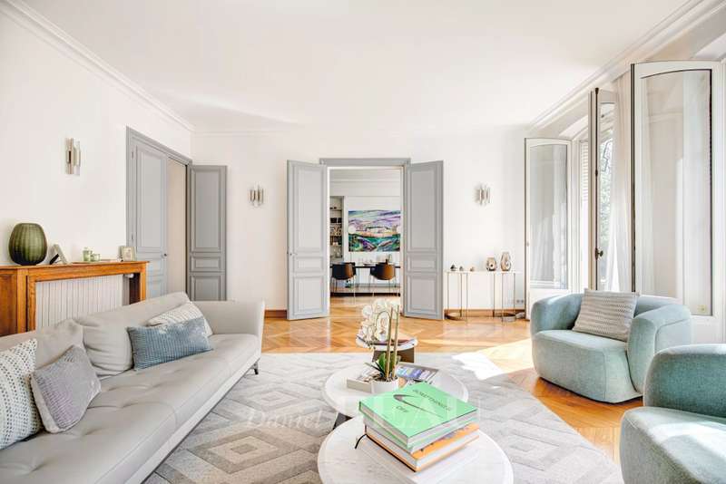 Rare on the market. Ranelagh gardens. This near 225 sqm apartment benefiting from a fully south-facing 120 sqm private garden is on the ground floor of a luxurious early 20th century building. It includes a spacious entry, a generous living/reception room opening onto the garden, a drawing room, a spacious kitchen, a dining room, a master bedroom with a bathroom, two further bedrooms with a shower room, and a guest wc. Ample fitted storage space. A 4th bedroom would be possible. With a cellar. With a parking space in the neighbouring building for a further 60000€.