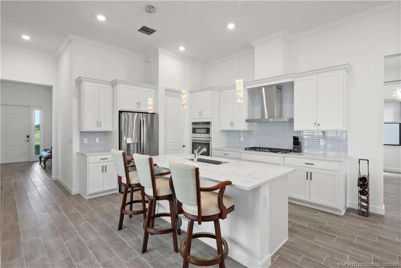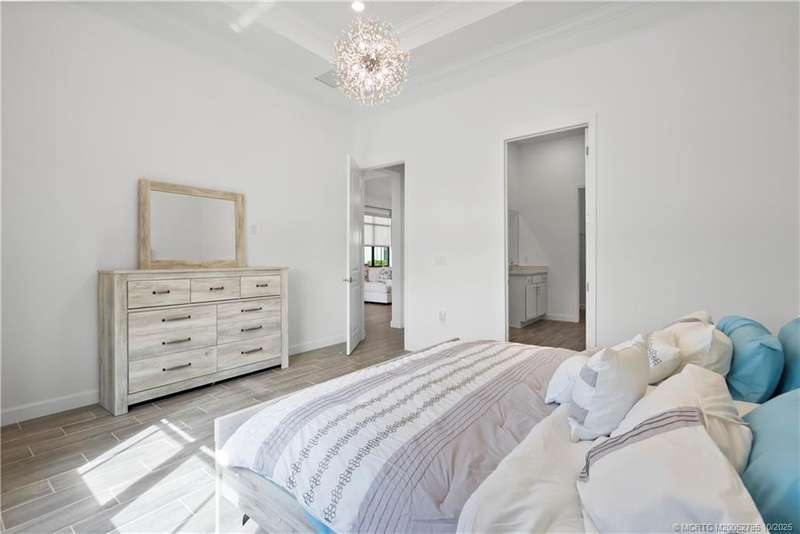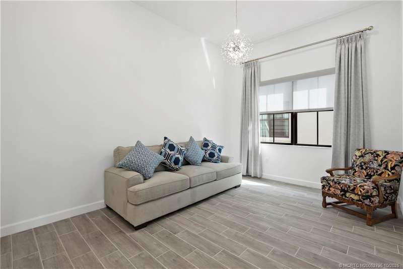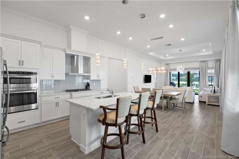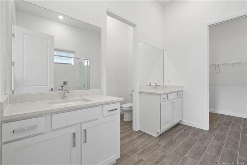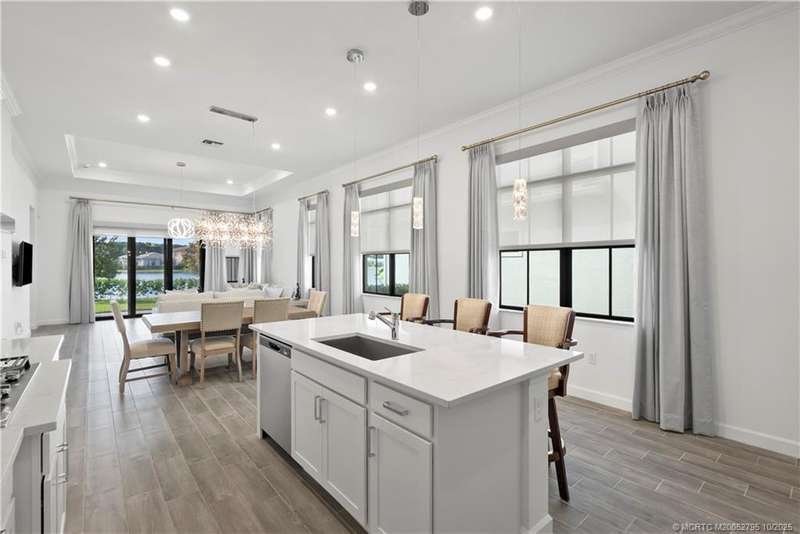 Designed for low-m?int?nan?e l?v?ng, th?s single-stor? hom? showcases a cohesive layout that blends the kitchen, dining room and living room together for seamless transitions between spaces. Through glass-sliders is a covered terrace for outdoor relaxation and serene lake views. Partially secluded from the open floorplan is a flex space ideal for at-home work. Two secondary bedrooms are split by a Jack-and-Jill style bathroom with convenient dual sinks, while the owner's suite with adjoining bathroom is tucked away for added privacy. This home is conveniently located in a gated, golf course community with close access to beaches and shopping. Golf memberships are available.