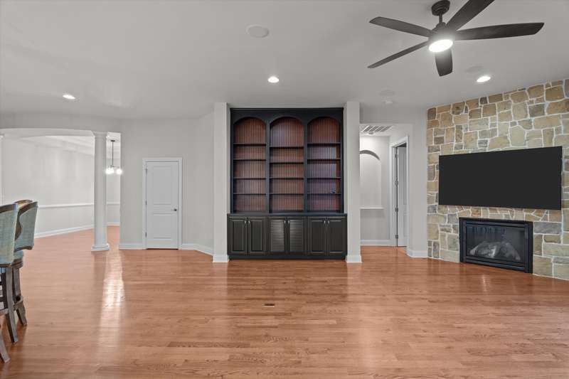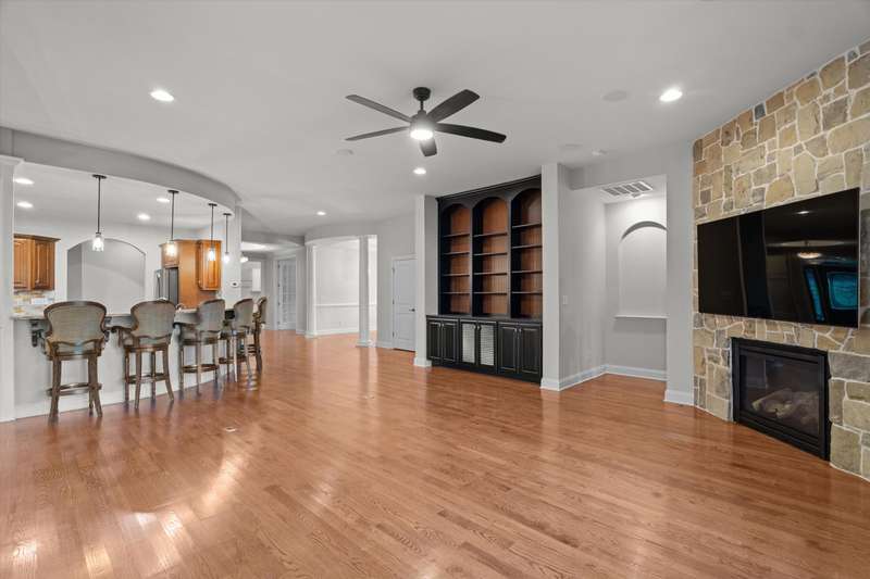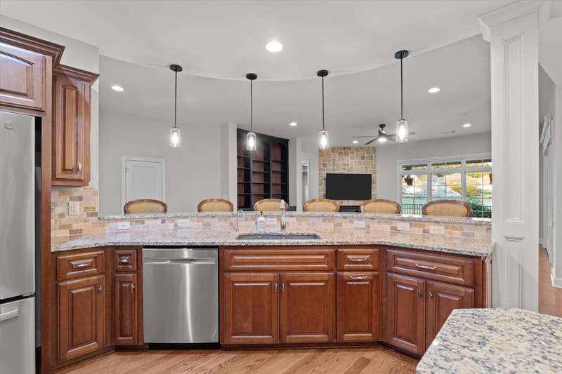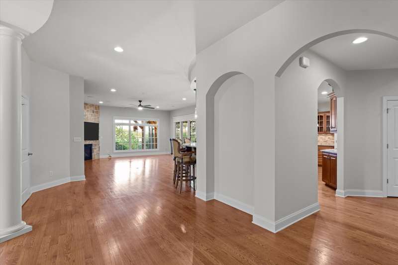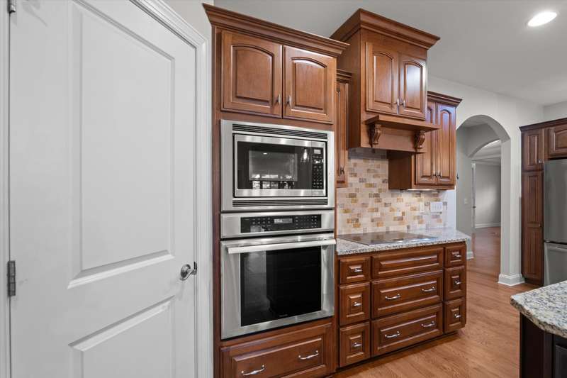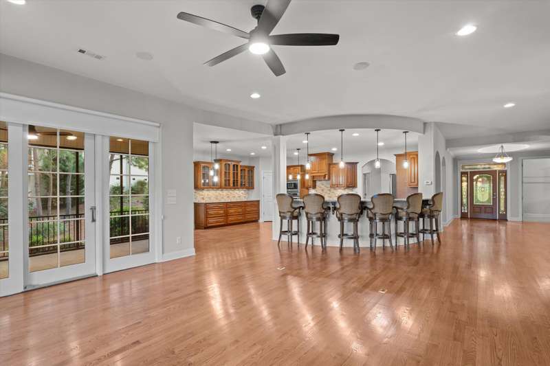 Enjoy refined Southern living in this beautifully designed and custom built 4-bedroom, 3.5-bath home spanning over 3,575 sq ft, perfectly positioned to capture views of the lush fairway of the #4 hole on the Fuzzy Zoeller Course. Nestled on a 0.63-acre lot in the gated Woodside Reserve, one of Aiken's most desirable golf communities. Rich hardwood floors carry through the main living areas and bedrooms, where soaring 8-ft doors, architectural archways, and oversized windows invite in natural light and panoramic views. The heart of the home is a grand open-concept living room, anchored by a stone fireplace, built-in cabinetry, and surround sound speakers. Double French doors lead out to a covered screened porch and pergola-perfect for quiet mornings or entertaining with a beautiful view. A true cook's kitchen offers a unique breakfast bar, Thermador induction cooktop and oven, prep island, backsplash, glass-front accent cabinets, walk-in pantry, and built-in microwave. There is an eat in breakfast area with beautiful bow window design as well as a formal dining room. The spacious main-level owner's suite is a relaxing retreat with golf course views, a dramatic tray ceiling, and an ensuite bath featuring dual vanities, soaking tub, oversized tile shower with bench, two custom walk-in closets, linen closet, and beautiful stained-glass detail. Two additional main-floor bedrooms share a large guest bath with double granite vanity and tiled shower. Upstairs, a large guest suite or Flex room includes two oversized closets and a private bath with double vanity and tiled shower-perfect for multi-generational living or extended stays. Additional highlights include: Large laundry room with utility sink, folding station and recessed ironing board station, office/study, 3 car garage with workshop area and built in storage, pella windows throughout. Located in Woodside, Aiken's premier master-planned and gated community, this home offers access to championship golf, walking trails, clubhouse dining, tennis, fitness, and more. With timeless finishes, a smart layout, and views that truly set it apart, this is one you don't want to miss!