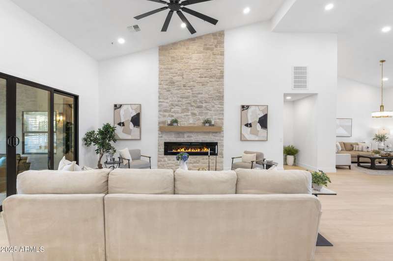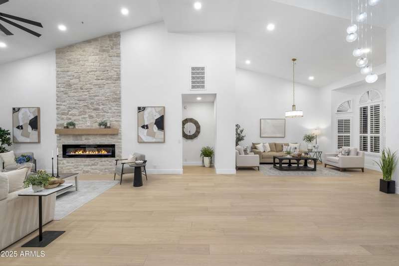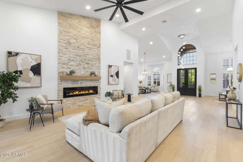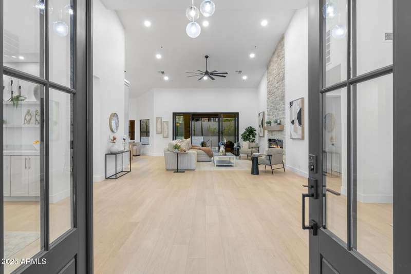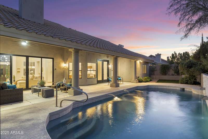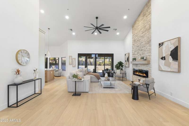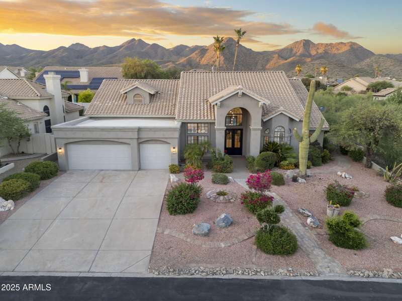 STUNNING 2025 REMODEL in GATED Sonoran Heights! This 4BD/3BA beauty blends modern luxury with timeless desert charm! Over 3,200 sq ft on a 10,212 SQFT cul-de-sac lot w/ beautiful MOUNTAIN VIEWS. The split floor plan features vaulted ceilings, wide-plank hardwoods, & a striking custom stone fireplace. The chef's kitchen impresses w/ porcelain counters, new shaker cabinetry, hidden pantry, brass hardware, and a 48'' Fisher & Paykel induction range. Spa-like baths showcase glass showers, designer tile, & new cabinetry. The luxurious primary suite includes a sitting area, LED-lit vanity, custom closet w/ built-ins, & a sleek wet-room shower w/ soaking tub. Outside, enjoy turf landscaping, a resurfaced pebble tech pool w/ stone tile & waterfall. Updated entry & a 3-car epoxy garage. WOW Located minutes away from top rated Scottsdale schools: Basis Charter Schools, & Desert Mountain High School nationally recognized for it's International Baccalaureate (IB) Programme.