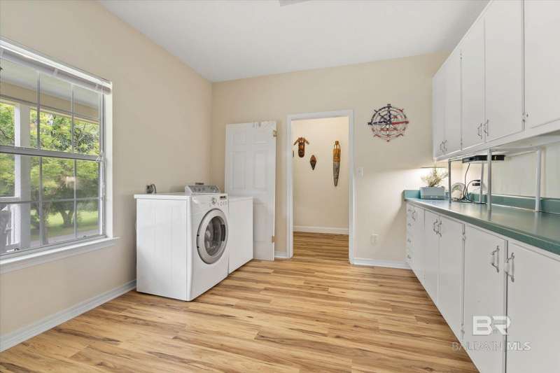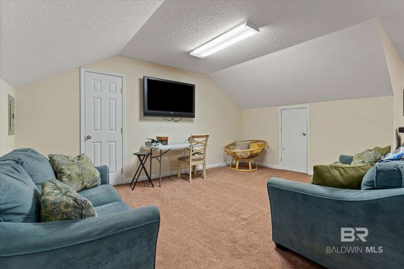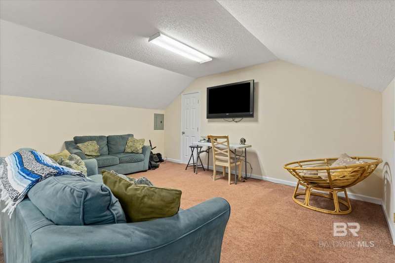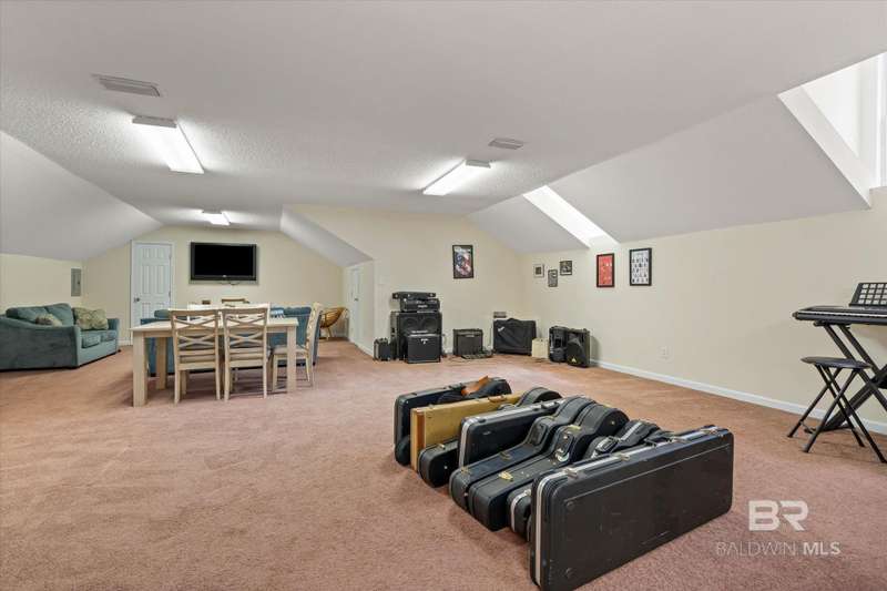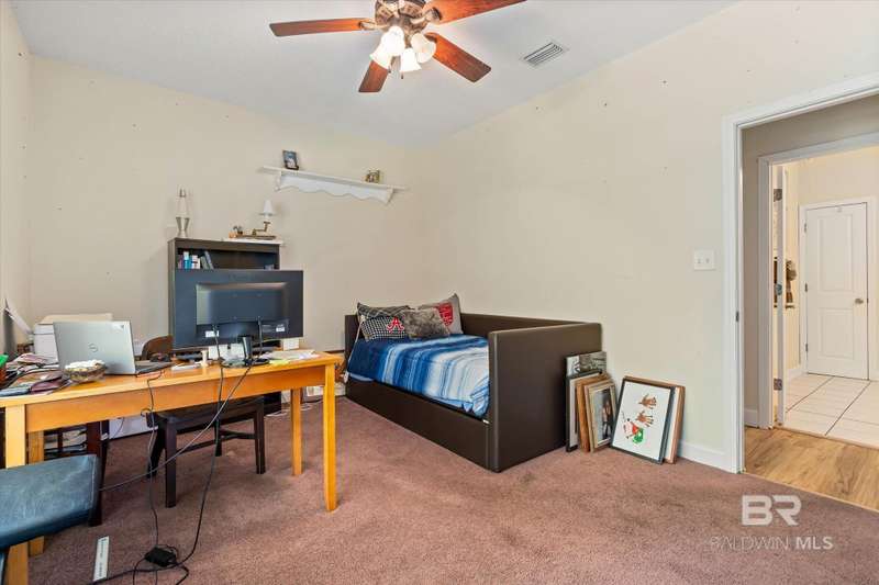 Come see where security meets tranquility with this 3BR 3BATH Home on a Gated Private Rd on 1.29 Acres. This home is one of five homes in this Non-HOA community in Loxley and is easily accessible from I-10 off of Hwy 59 or Hwy 181. Large covered front porch has two mounted porch swings. A covered back porch allows good views into a fenced backyard, with plenty of room to add more landscaping pieces in or freedom for Fido. Open floor plan boasts new LVP flooring throughout the main level common areas. Over 400 sq ft great room is a good space for entertaining, and has an electric fireplace. Spacious Kitchen includes Gas Range and oven. Lots of counter and cabinet space and a breakfast bar. Connected dining room could fit a large dining table. Upstairs features a Large bonus room with a half partition separating the space. A large third Bedroom and bathroom finish out the upstairs. All wall mounted TVs, including the one in the bonus room, are remaining with the home. Seller is motivated, and will replace the roof with a fortified roof, with an acceptable offer. Buyer to verify all information during due diligence.
