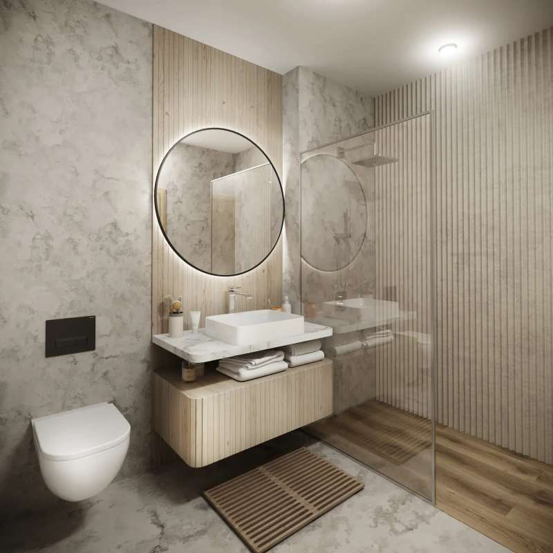 From the equipment standards, we can mention for example: windows with insulating triple glazing, multi-layer wooden floors, large-format tiles and paving, seamless interior doors, premium sanitary ware and plumbing fixtures, underfloor heating, and security entrance doors.