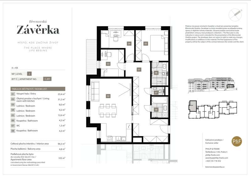 Become the owner of an apartment 4+kk with a size of 102 m2 with a balcony, located on the 2nd above-ground floor of a newly emerging intimate project in the heart of B?evnov.