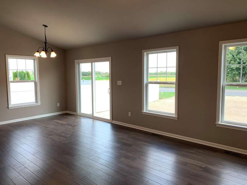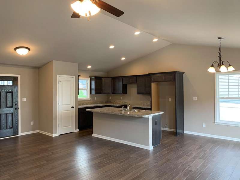 NOT YET BUILT, this is our STOCKTON MODEL. Features include an open concept, great room with vaulted ceiling, kitchen with soft close, maple cabinetry (painted cabinet options), crown molding, GRANITE, island with seating, immediate access to the rear patio via glass sliding doors, PRIMARY BEDROOM with walk-in closet, tray ceiling, and ENSUITE bathroom, QUARTZ tops in all bathrooms, black or brushed nickel hardware and lighting, one paint color included, fully LANDSCAPED LOT, BOARD AND BATTEN/vinyl and exterior, concrete patio, attached garage with door opener installed, full BASEMENT (stubbed for future bath), AND BUILDER WARRANTY. Photos of a prior build.