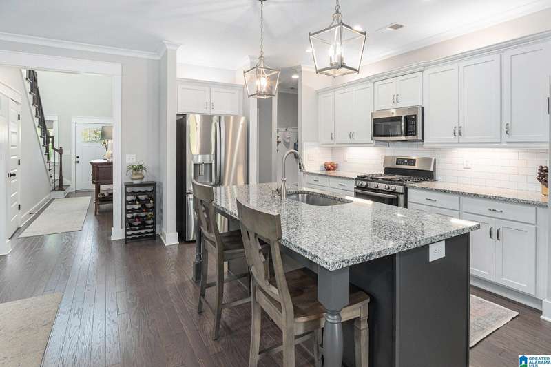 Oxmoor Village is one of Birmingham's most popular communities thanks to its unique streetscape of craftsman homes and its convenience to downtown, shops, and restaurants. Your guests will be greeted in Southern charm by the dramatic two-story foyer and grand open staircase. The living areas are open, yet privately situated toward the rear of the home. The kitchen features beautiful cabinets with lighting above and below, gas range, large island with seating, and a huge walk-in pantry right off the garage. The graceful dining room flows easily into the living room which showcases a stone fireplace flanked by built-in bookcases with cabinet storage. The main-level primary suite offers a walk-in closet, huge double vanity, oversized tile shower, linen closet, and water closet. Upstairs are three bedrooms, a full bathroom, PLUS a spacious loft which is flooded by natural light and overlooks the two-story foyer. The covered patio is ideal for outdoor living and entertaining. You must see!