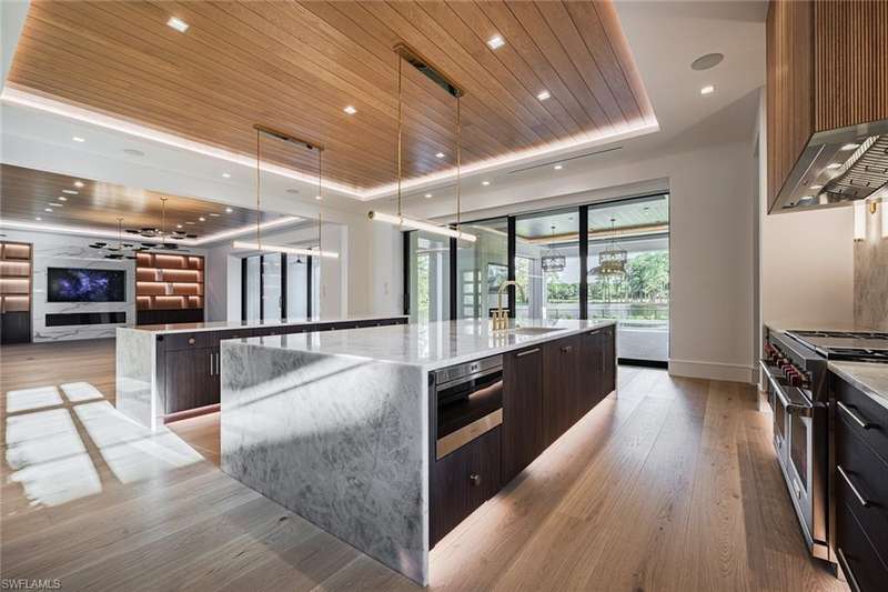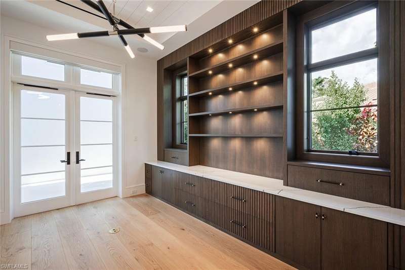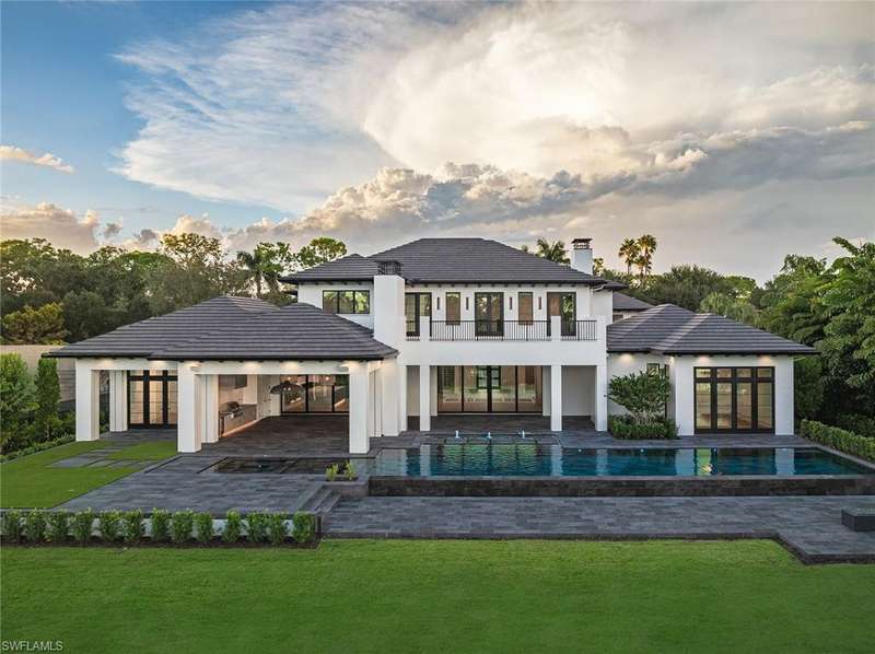 IMMEDIATE GOLF MEMBERSHIP AVAILABLE! Perfectly situated in one of Naples most prestigious communities, this brand-new custom estate blends architectural brilliance, refined interiors, and resort-style living. Designed and built by the renowned team of Diamond Custom Homes, Kukk Architecture, and Knot and Tide Interiors, every detail of this residence has been thoughtfully curated to deliver both elegance and comfort. Offering 6 bedrooms plus a den and loft, 6 full baths, and 2 half baths, the home is crafted for both grand entertaining and private retreat. The spectacular great room features soaring ceilings, a statement fireplace, and walls of glass framing serene views of the expansive pool complex complete with spa, outdoor kitchen/bar, and fire feature. The chef s kitchen is equally impressive, with generous storage, professional-grade appliances, and a built-in pantry. The private master suite provides a spa-like escape, while the 5+ car garage ensures ample room for vehicles a