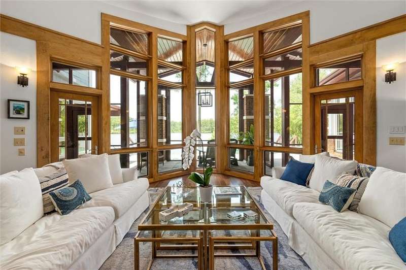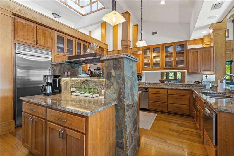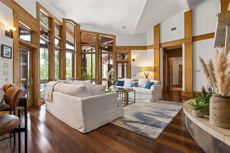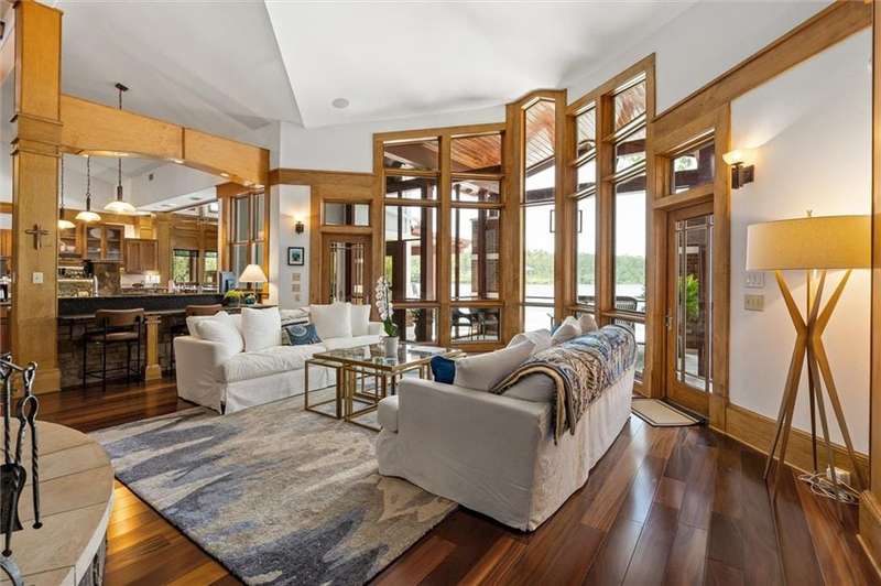 Welcome to an extraordinary, architecturally designed single-level home on two lots with 267 feet of shoreline. Located near the Eastern Shore, only 30 minutes from Fairhope, this spectacular 5,154sf residence redefines elegance, comfort and sophistication on the shores of Steelwood Lake, complimented with a stream running alongside the property. Expansive Pella windows and doors offer panoramic lake views, blending timeless architecture with serene natural beauty. Each room, including outside spaces, has individually controlled stereo sound. Upon entering, you will be welcomed by rich hickory floors that extend through the formal dining room, office and the open-concept kitchen and living areas. The living room features a striking floor-to-ceilingstone gas fireplace, Brazilian cherry wood floors and lake views. In contrast, an additional stone gas fireplace creates a cozy atmosphere in the spacious family room, ideal for entertaining and quiet evenings. Prepare meals in the chef's kitchen, equipped with stainless GE Monogram appliances such as a gas cooktop with griddle, convection ovens, ice maker, multiple wine coolers, prep sink two dishwashers and a trash compactor.Designed by Architect Carter Quina, this split-bedroom layout features three luxurious en-suite bedrooms and two additional half baths. The primary suite features French doors which open to the patio and a stunning infinity-edge gunite pool with a tanning shelf. The primary bathroom includes a jetted tub, walk-in shower, a private water closet and dual closets. Outside, a beautifully landscaped yard offers a true private oasis. Entertain guests with an outdoor kitchen, screened porches, a wood-burning fireplace and covered patio dining. Experiencefishing from your private pier on Steelwood Lake, renowned for its exceptional bass and bream fishing, all within the exclusive, gated community of Steelwood Country Club. Steelwood is located 7' from 1-10 and easy access to Mobile or Pensacola. Buyer to ve