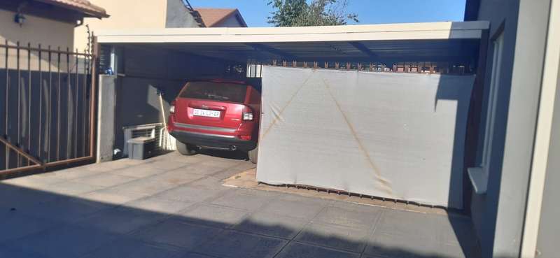 This neat and well-maintained 3-bedroom, 1.5-bathroom property is a perfect blend of comfort and practicality. Located on a 250 sqm stand, the home boasts an open-plan lounge and a fitted kitchen, offering a seamless flow for everyday living. The property includes a carport for up to 3 vehicles and a partially paved yard with a quaint, manageable garden in the front, creating a welcoming outdoor space. For added security, the home is fitted with burglar bars throughout. Additionally, there is a convenient storeroom for extra storage. Ideal for a family or anyone looking for a well-kept home with ample parking space
