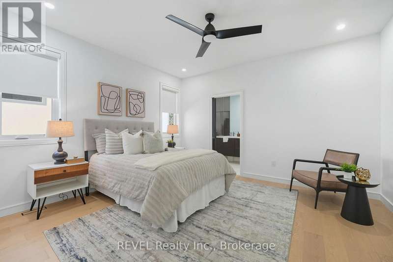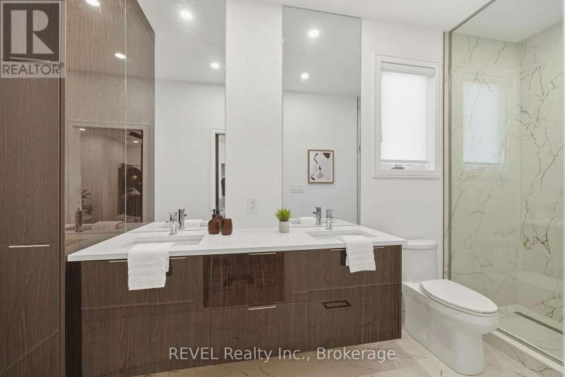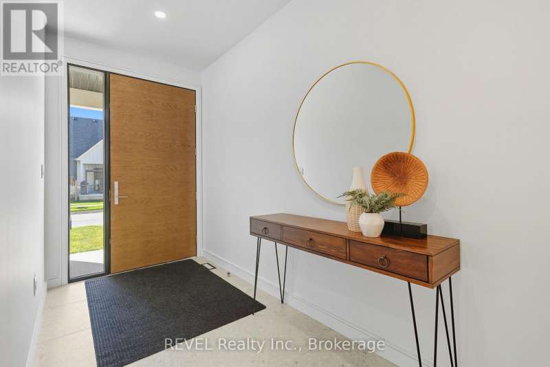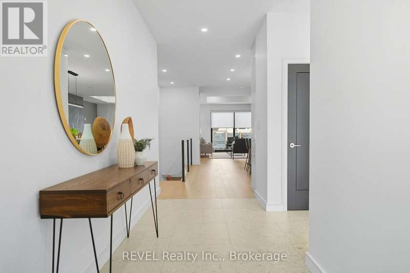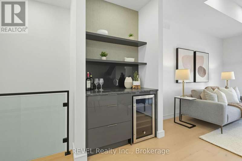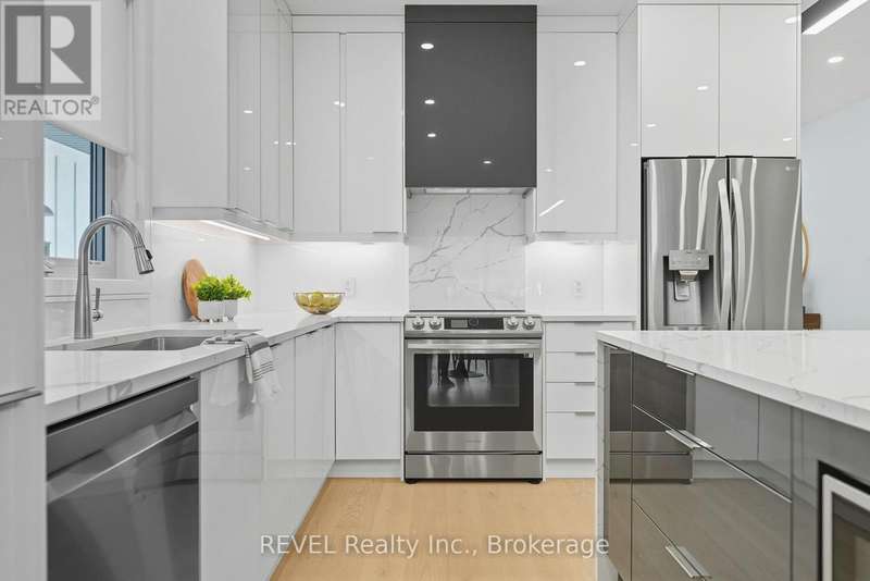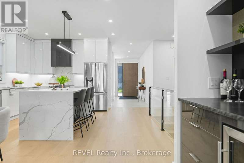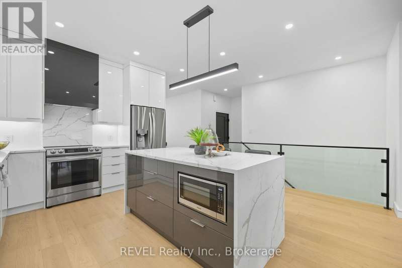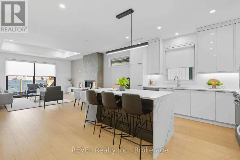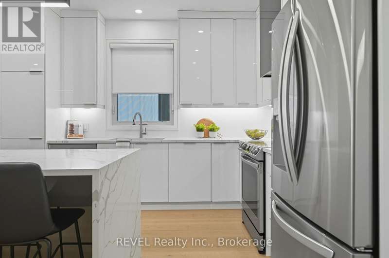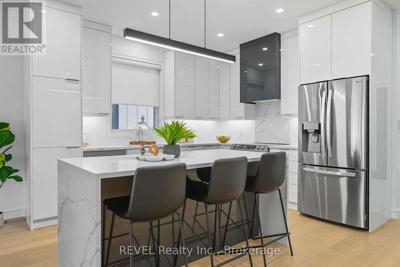 Welcome to this stunning custom-built bungalow in Thorold, designed with style, function, and comfort in mind. The open-concept layout highlights a chefs kitchen with custom cabinetry, painted glass backsplash, a striking quartz double waterfall island, and brand-new stainless steel appliances. An additional espresso bar with wine fridge off the dining area adds the perfect touch for entertaining. The bright living room features a sleek linear gas fireplace and oversized double patio doors (9x8) that flood the space with natural light and lead to a 16x12 wooden deck complete with privacy screening. The main floor offers two bedrooms, including a primary suite with a walk-in closet and a spa-like ensuite boasting a custom double vanity and large glass walk-in shower. A main 4-pc bathroom, mud/laundry room, and Italian tile with engineered hardwood flooring complete this level.The fully finished lower level expands your living space with two additional bedrooms with egress windows, a 3-pc bathroom, and a large recreation area, all finished with durable vinyl flooring. Additional features include battery-powered window coverings on the main floor, an attached single-car garage, and a double-wide driveway. Set in a prime location close to shopping, amenities, and with easy highway access, this home is within walking distance to scenic trails and Lake Gibson Conservation Park. A true blend of modern design and everyday convenience, move in and enjoy! (id:7434)