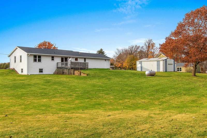 Welcome to this one owner home located on almost 2 acres of land with an additional outdoor shed (28X24'). Step inside to a cozy and bright Living Room with large windows. Open concept Kitchen & Dining area, with patio door leading to a peaceful backyard. Spacious Primary bedroom with 2 closets . Laundry on the main floor. Other features include a LL Family room & Rec room with bar & exposed windows. Don't miss out on this opportunity! Updates: 2025 Sump pump. 2022 Roof, Furnace, A/C. 2010 Windows. Property is an estate sale and is being sold as is. Please allow 48 hours for binding acceptance. 2 holding tanks, 1250 gallons each.