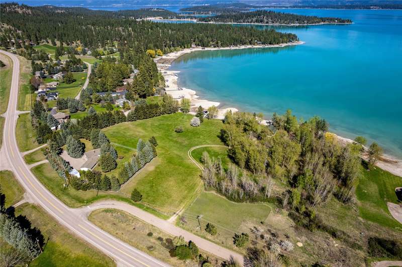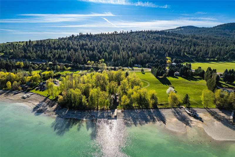 Experience the pinnacle of Montana lakefront living with this extraordinary 9.54-acre estate on the coveted shores of Flathead Lake's Rocky Point. Offering a rare combination of expansive land, architectural artistry, and multi-residence flexibility, this property is truly one of the crown jewels of the region. The main residence is a stunning hand-carved log cabin, featuring 2 bedrooms and 2 bathrooms, where rustic elegance meets refined craftsmanship. Vaulted ceilings, custom woodwork, and expansive windows frame breathtaking lake and mountain views, creating a warm and sophisticated retreat. Complementing the main home is a 3-bedroom, 2-bath guest residence, perfect for hosting guests or as a private sanctuary. What makes this estate truly exceptional is its scale. Spanning nearly 10 acres, this is one of the largest private lakefront parcels on Flathead Lake, offering unparalleled privacy, open rolling space, and legacy appeal. Enjoy over 550 feet of shoreline, pristine natural surroundings, and the kind of exclusivity rarely available on Montana's most iconic lake. Whether you're looking to create a luxurious family compound, an elegant seasonal getaway, or a generational investment, this Rocky Point masterpiece offers limitless possibilities in an unmatched setting.