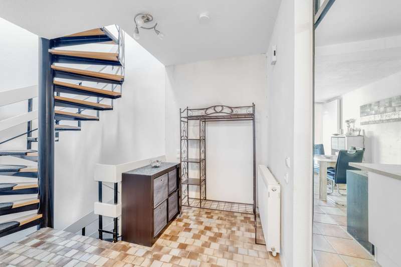 Von Poll Immobilien presents this quietly located mid-terrace house in a pleasant residential area of Trier-Mariahof. Built in 1966 in solid construction, the property offers a living space of approx. 110 m² spread over three floors. The plot covers around 300 m² and the offer also includes a garage. The exact room layout can be found in the floor plans, which we will be happy to provide on request. The house is entered at ground level. All rooms on the first floor are directly accessible from the entrance area with adjoining hallway. There is a modern guest shower room on the left-hand side. To the right is the kitchen and the spacious living room with access to the terrace and the rear garden. The large windows provide a pleasant amount of light and create a good connection between the indoor and outdoor areas. The central staircase leads to the upper floor, which comprises four rooms of different sizes and a further bathroom. The rooms can be used flexibly - as bedrooms, children's rooms, study rooms or guest rooms. The basement offers additional space that can be used as storage, a workroom or a hobby area, for example. The property is located in a quiet residential street with no through traffic. Shopping facilities, schools and public transport links are easily accessible. For further information or to arrange a viewing appointment, we look forward to receiving your inquiry.