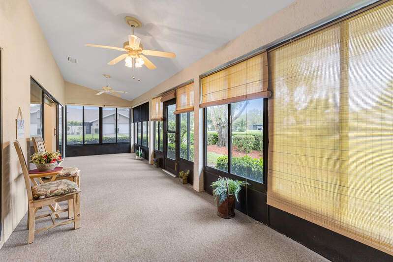 NOW THE ONLY SINGLE-STORY, SINGLE FAMILY HOME in Cross Creek Country Club with BUNDLED GOLF!!! This "condo-home" offers 2 bedrooms and 2.5 baths, A 2-CAR GARAGE, and an EXPANSIVE SUNROOM on a quiet street. It also includes an extra flex room (18'X16'), making it an excellent second suite or space for a pool table, fitness/yoga, a MASSIVE DEN, or another family room. This beautiful residence is 2,000sqft under air and provides LARGE living areas, VAULTED CEILINGS, ample NATURAL LIGHT, separate full dining, GOURMET DESIGNER KITCHEN with breakfast area and built-in desk, and UPDATES throughout. A SPACIOUS master bedroom with an UPDATED ENSUITE BATH and full-wall closet makes this an INVITING RETREAT. This LOVELY home captures your affection: all appliances and W/D included. You will never want to leave this great South Fort Myers community: golf, restaurant/bar, tennis, pickleball, bocce, TWO POOLS, basic cable/internet, and more--or you could spend your time at the incredible beaches, dining, shopping, entertainment, Twins' and Red Sox's training stadiums, and RSW International Airport just 20 minutes away. Because of its low real estate taxes, prime location, and the ROOF & EXTERIOR ARE COVERED BY THE ASSOCIATION, this stunning "condo-home" is rated a "BEST VALUE BUY!" Now's the time to grab your piece of PARADISE!