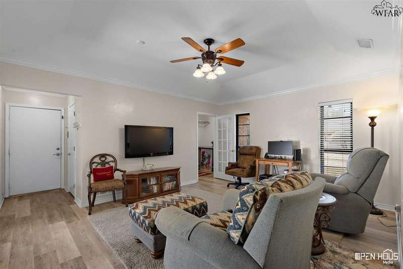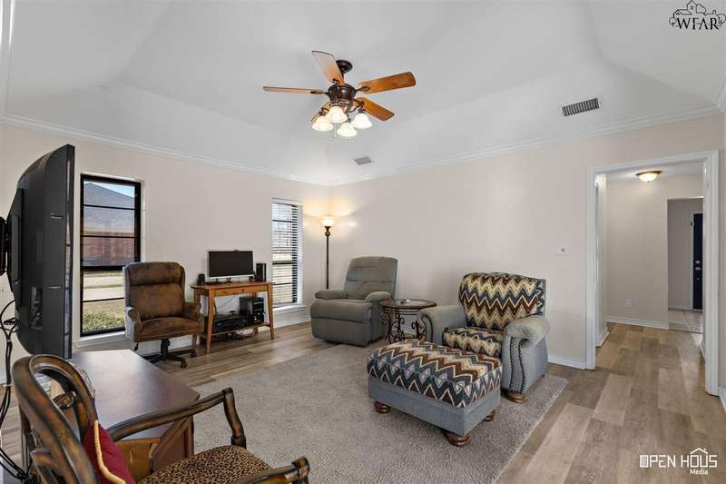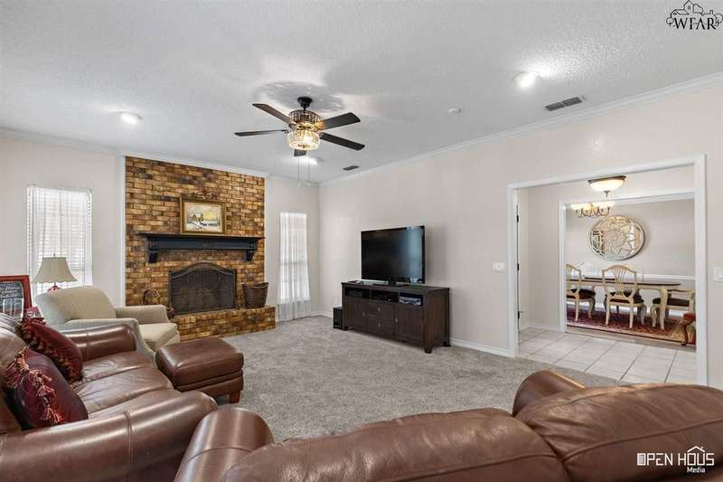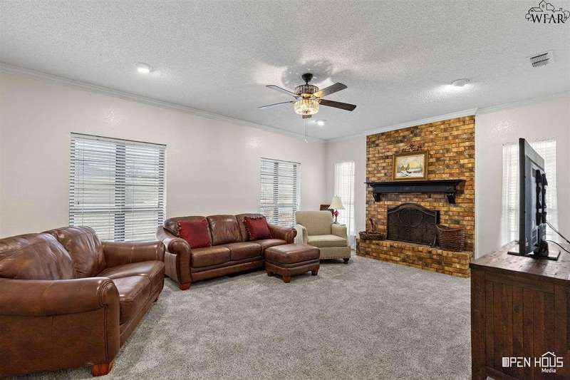Wonderfully kept 3 or 4 bedroom home in Tanglewood. 2.5 bathrooms, primary suite with spacious bathroom with a free standing tub, walk in shower and two sinks. Just under 2,500 square feet with a beautiful living room with an abundance of natural light and brick fireplace. Lovely covered patio and plenty of parking for your boat or RV!