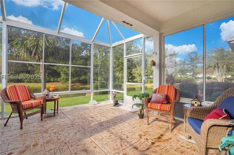 If Sun City Hilton Head is your dream destination, dont miss this popular Egret Model with stunning lagoon views! This 2BD/2BA home, complete with an office/flex room, offers a spacious open-concept layout perfect for enjoying the southern lifestyle. The large eat-in kitchen flows into the dining and living area, with views through the patio door to a lanai with vinyl windows and a durable hard coat roofperfect for relaxing with your morning coffee or evening sunsets. Primary bedroom features ensuite bathroom and large walk in closet. Sun City Hilton Head in Bluffton, SC, is a premier 55+ community spanning over 5,000 acres, offering an unmatched resort-style lifestyle. Residents enjoy 54 holes of golf across three scenic courses, six pools (including indoor lap and leisure pools), and three fully equipped fitness centers with classes and studios. The sports park offers tennis, pickleball, bocce, softball, volleyball, croquet, and more. Social and creative outlets abound with a ballroom, 16,000 sq ft performing arts theater, arts and crafts studios, woodworking shop, billiards, card rooms, and a library. Outdoor enthusiasts appreciate the Lake Somerset and Riverbend Docks, fishing, miles of walking and nature trails, community gardens, and three dog parks. There are over 150 clubs covering everything from arts and music to technology and lifelong learning. Additional amenities include on-site restaurants, RV and boat storage, and a secure, gated environment with convenient access to Hilton Head beaches, Historic Savannah and Charleston along with local shopping, dining, and healthcare. Sun City is also expanding with a new multimillion-dollar resort style amenity center coming soon!!!!