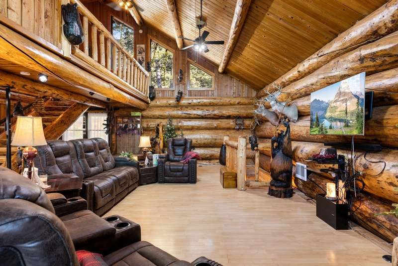 Motivated seller now offering seller financing! $750k down, carry the rest for 5 years at 5% interest only! Reapply every year to show proof! Discover the Montana mountain charm with this custom log home on 20 parked-out acres overlooking the breathtaking Flathead Valley. Built with full timber construction, this home showcases craftsmanship and strength, featuring a covered wrap-around porch ideal for taking in the panoramic views. Inside, you'll find a warm and inviting atmosphere with two wood-burning stoves and thoughtful rustic details. The primary suite offers a private retreat, complete with a balcony to savor sunrises and sunsets. This property is securely equipped with bulletproof doors, screens, and windows-providing peace of mind. An upgraded well ensures reliable water access. Outdoor enthusiasts will love the hot and cold outdoor shower, perfect after a day of hunting on your own property, and the greenhouse for year-round gardening.