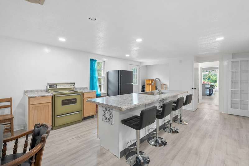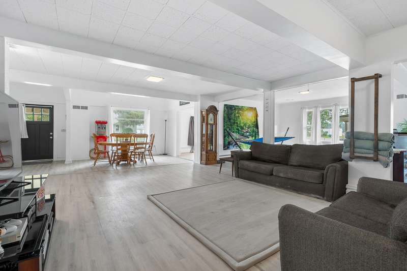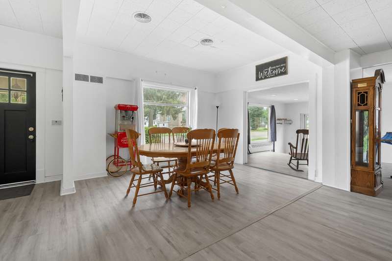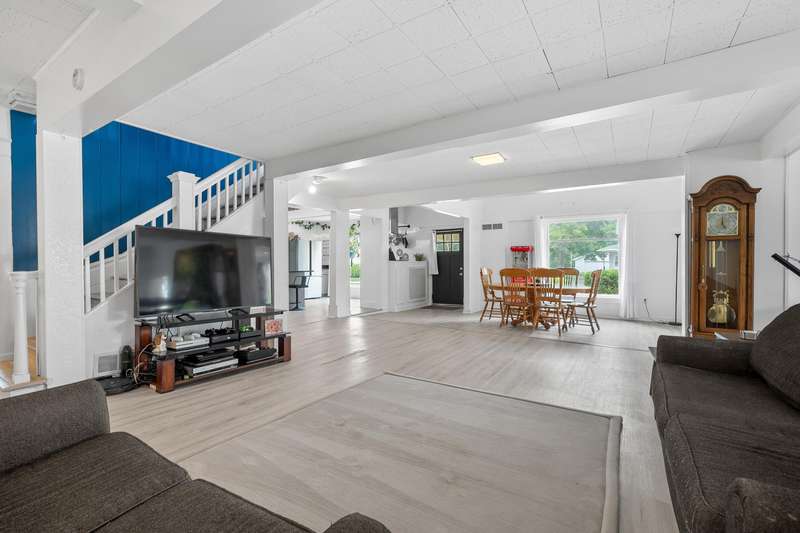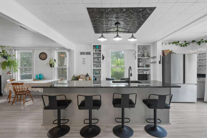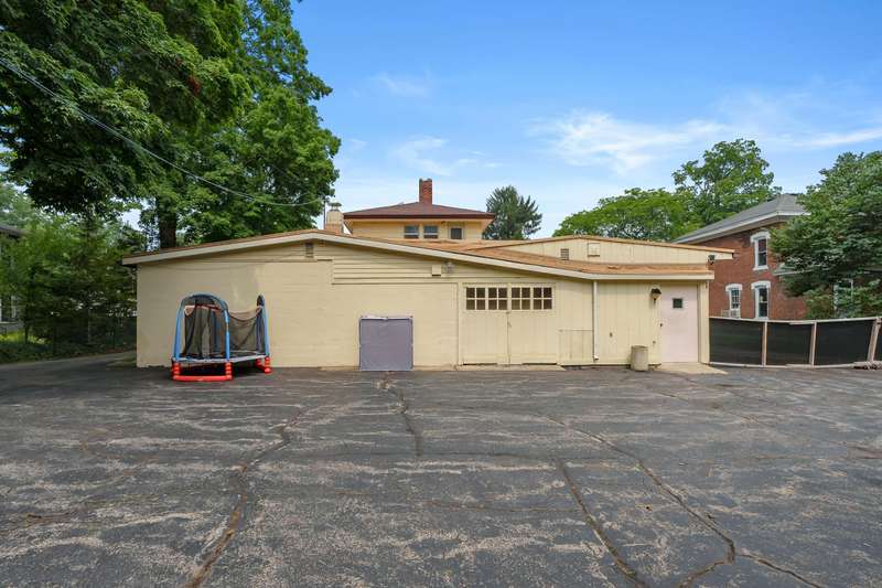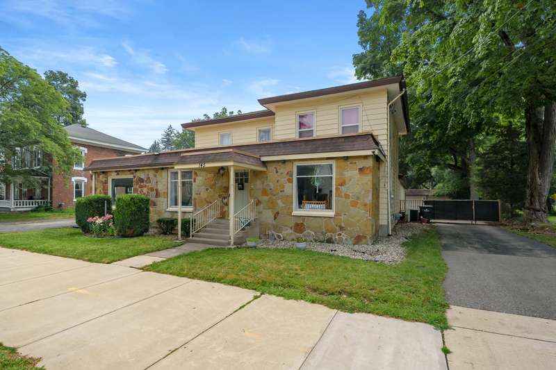 Welcome to the largest residential property within the city of Galesburg, offering over 5,400 sq ft of beautifully renovated living space on 3.46 acres of scenic riverfront. This historic home has been thoughtfully updated featuring all new flooring and brilliant white paint throughout. Major mechanical upgrades include a new electrical panel, and replacement of all galvanized steel plumbing lines. The expansive main level showcases a wide-open floor plan with a stunning kitchen featuring granite countertops and a 10-foot island that flows into the dining and spacious living areas, ideal for entertaining or everyday living. The home includes one full and two half baths on the main level, and a luxurious full bath upstairs with a deep soaking tub. Click supplement for more! A separate bonus living space with its own driveway and private entrance, a second full kitchen, a primary suite with a walk-in shower, and an additional half bath, making it perfect for a in-law suite, rental apartment, guest quarters, or multi-generational living. Zoned R-3 Residential, this versatile home has the potential to be converted into a 3-unit income property, with three kitchens already in place. Alternatively, take advantage of the layout to run a business on the lower level while living upstairs, the possibilities are endless. Other highlights include a large workshop/tool room, a spacious laundry area with stainless steel counters, durable cabinetry, and solid wood built-ins and closets throughout the home. Outside, enjoy a large fenced yard and over 3 acres of woods teeming with wildlife, including deer, rabbits, and a resident bald eagle. The property features direct river access for fishing, kayaking, or canoeing, and access to the Kal-Haven Trail for safe, scenic walking, running, or biking. Tall ceilings and airy spaces create a warm and inviting atmosphere that must be experienced in person. Don't miss the one-of-a-kind opportunity to own a multi-use, historic riverfront estate in the heart of Galesburg.