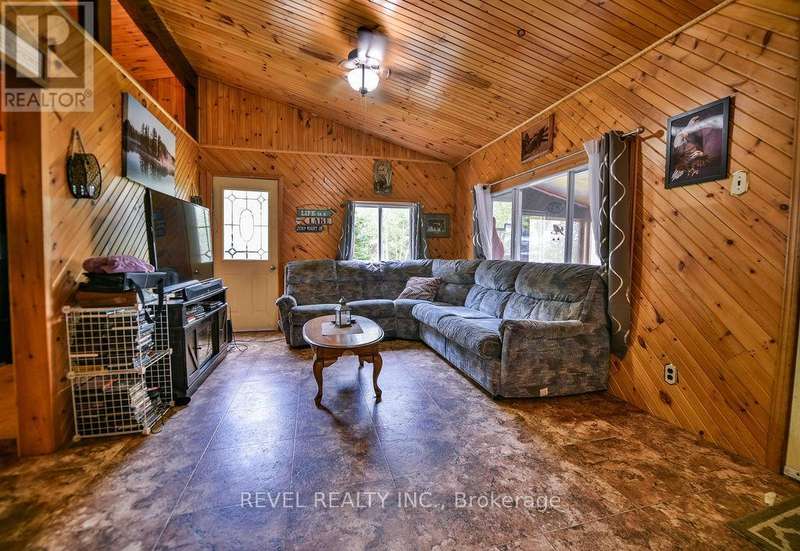 3-season, 2-bedroom, 1-bathroom cottage on Departure Lake featuring an 8x12 hydro-serviced bunkie for guests, 18x32 detached garage, dock with excellent pickerel fishing, and a wood-fired hot tub. Interior highlights include a bright sunroom, electric heat plus a wood stove, lake intake water system, and holding tank septic. Offered fully furnished and equipped, this property is turn-key and ready to enjoy. Year-round road access, immediate possession, and beautiful morning sunrise views make this an ideal lakeside retreat. (id:27)