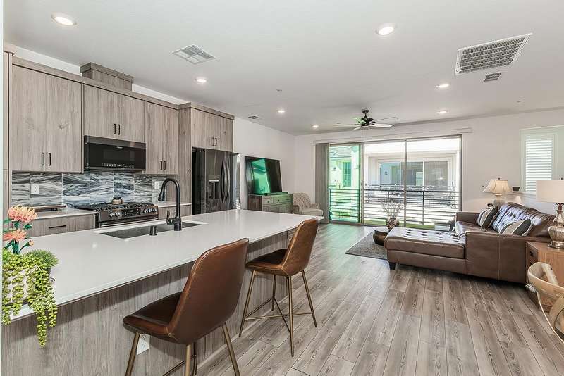 Welcome to the Brambles by Lennar! As you enter this 2 bedroom 2 bathroom home you're welcomed by a spacious downstairs suite complete with it's own private bathroom. Upstairs you find the expansive open layout showcasing a sophisticated kitchen with a breakfast bar, sleek backsplash, stainless steel appliances, Quartz countertops, large pantry and under cabinet lighting. The upstairs primary suite includes it's own en suite bathroom and a walk in closet. Vinyl plank flooring, ceiling fans and recessed lighting throughout the home. Easy access to main roads, outdoor recreation areas, Woodward Park, and close proximity to entertainment, and within top rated Clovis Unified School District. With dual master style bedrooms, modern finishes and unbeatable location this home is the total package. The home includes washer/ dryer and refrigerator making it completely move in ready. Whether you're looking to reside or generate income, this residence offers flexibility with the option to rent out one suite or the entire home.