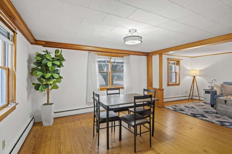Welcome home! This charming 3-bedroom, 2-bath Cape is perfect for a first-time home-buyer or investor. Neat as a pin and filled with warmth, this home offers hardwood floors in the inviting living and dining areas. The spacious, cabinet-packed eat-in kitchen features tile flooring, convenient in-kitchen laundry, and a walk-in pantry for extra storage. Upstairs, you’ll find two comfortable bedrooms with hardwood floors and a full bath. The finished lower level extends your living space with plenty of built-in storage—ideal for a family room, hobby area, or home office. Outside, enjoy a large yard with space for gardening and outdoor activities, plus a detached one-car garage. A wonderful opportunity to own a bright, well-maintained home with plenty of room to grow!