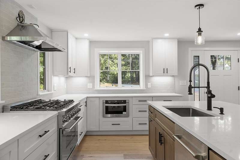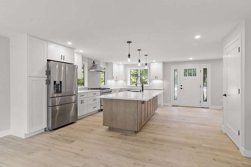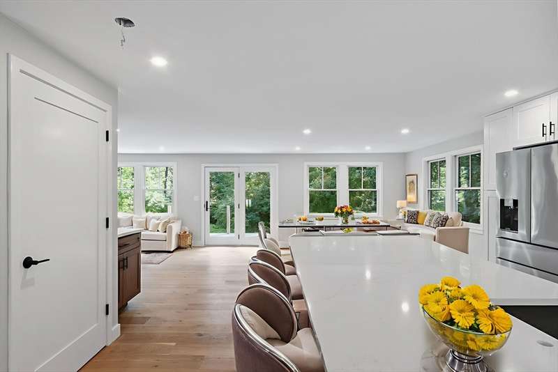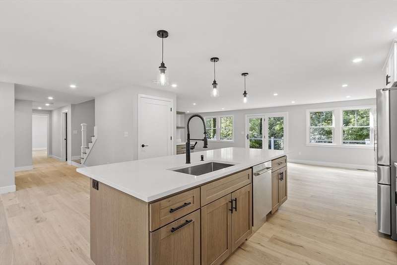 NEW CONSTRUCTION in a popular neighborhood just minutes from Rt.95 in East Boxford! The masterfully built home on the pre-existing foundation is clearly one of a kind. This is a stunning 4-bedroom, 3.5 bath home featuring an Open Floor Plan, w/ a 1st floor HomeOffice, Laundry Room, & Primary Bedroom. The Kitchen is truly the heart of the home, full of natural light & is a dream to prepare meals in. The expansive quartz Island adds so much space to work, in addition to providing more storage. The Dining area flowing into the Living Room w/ a brick FP creates a warm & cozy place for large family gatherings or everyday life. The 2nd floor offers 3 generous sized bedrooms w/large closets & a full bath. The Lower-Level Family Room features a walk-out & a full Bathroom for convenience. With a new roof, all new siding, windows, flooring, electrical, plumbing, appliances, garage doors, there's no need to budget for future repairs! NEW 4 Bedroom Septic, Driveway, Retaining Walls & 27 x 10 Deck.