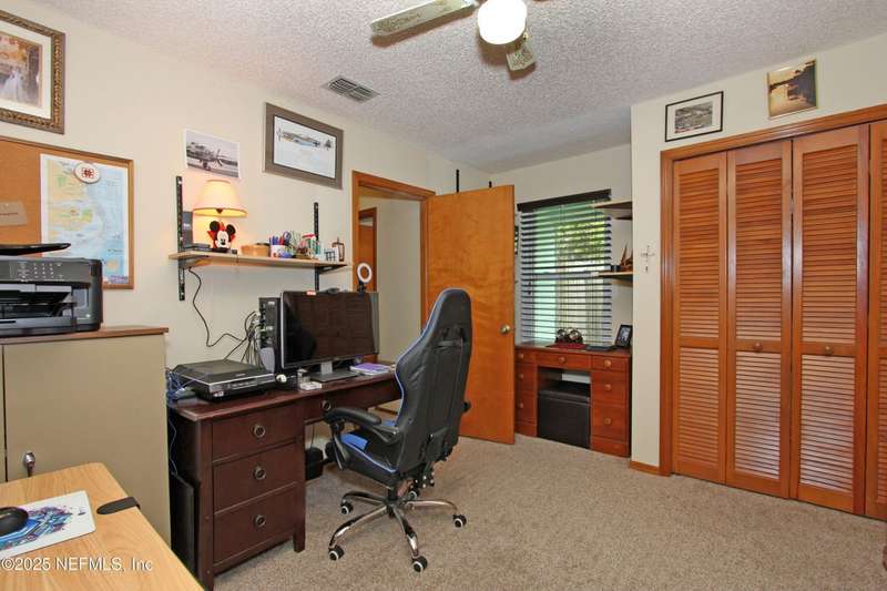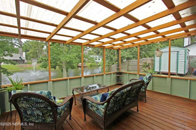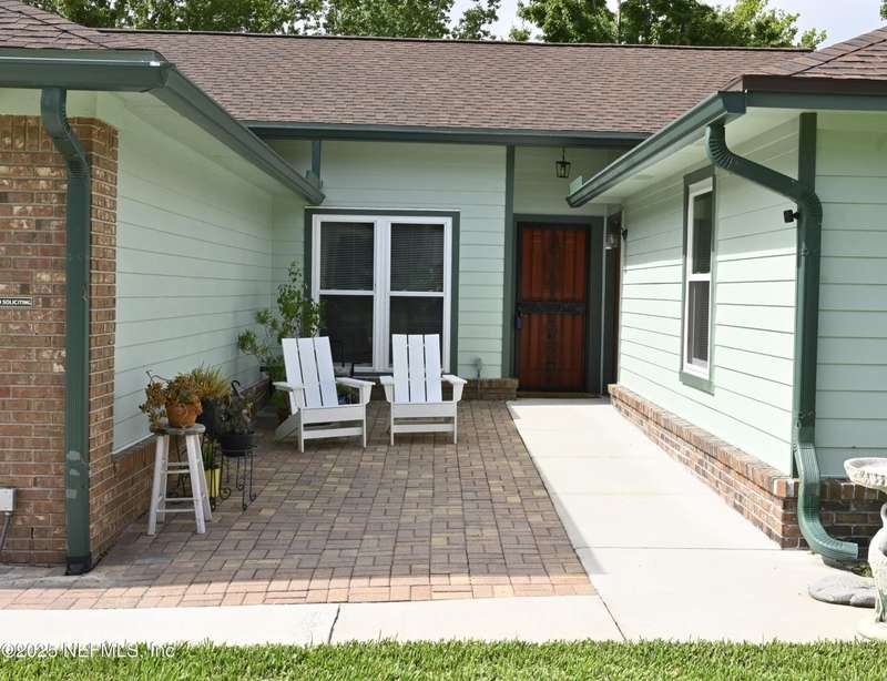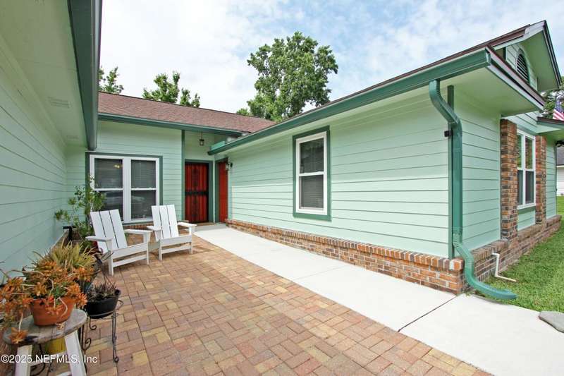 Great Location! Welcome home to this move in ready 4-BD, 3-BA WATERFRONT home. Enjoy the tranquil pond from your patio in the fenced backyard where turtles and local wildlife often visit. A standout feature is the 2017 fourth bedroom addition with a separate entrance, private bath, and mini-split A/C making this space ideal for a home office, guest accommodation, or multigenerational living. As you approach the home, enjoy the paver courtyard, ready for enjoying time outdoors or entertaining neighbors. The oversized 2-car garage, widened driveway, and side yard access allows room for a boat or trailer, plus an 8x8 storage shed. Located just 1 mile from the A-rated Paterson Elementary, close to shopping, parks, Baptist Hospital and only 15 minutes to NAS JAX. This is a rare find in a sought-after location, and ready for its next owner. This home includes a one-year home warranty and best of all, NO HOA or CDD fees! Don't miss your chance to call this one home!