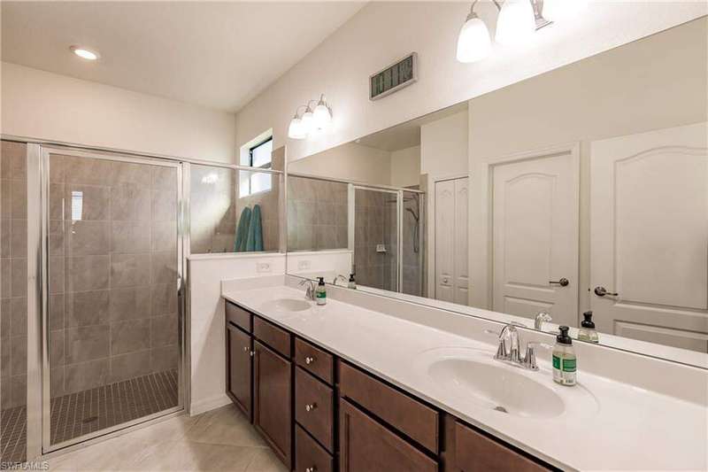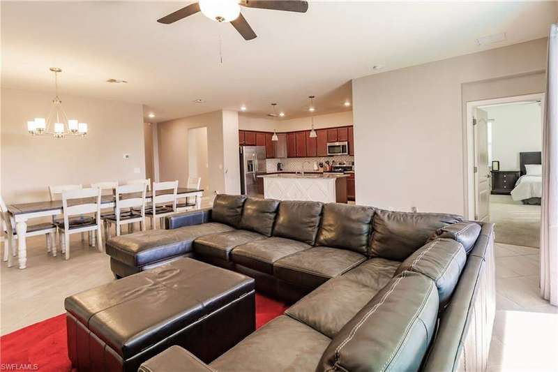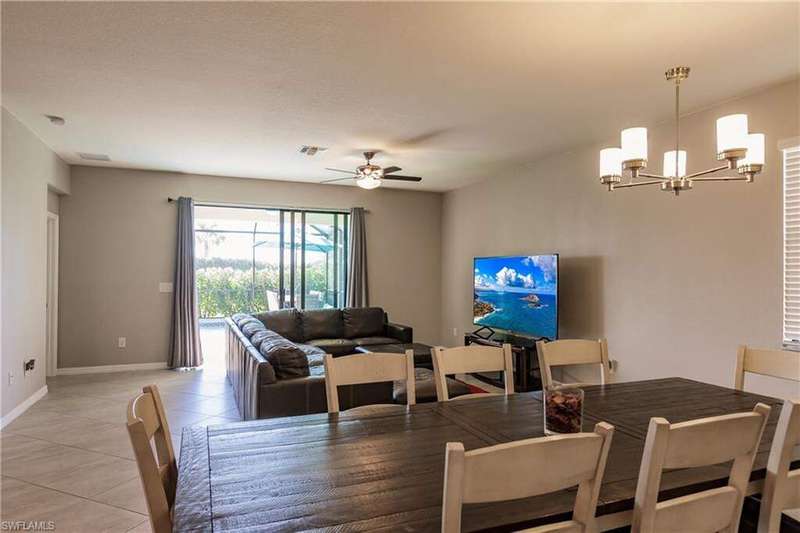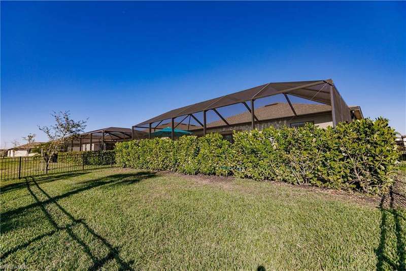 LUXURY POOL INCLUDED! GREAT BUYING OPPORTUNITY! GORGEOUS 4 BEDROOM / 3 BATHROOM POOL HOME W/ FENCED-IN BACKYARD FOR UNDER $450K! LOCATED IN QUIET CUL-DU-SAC STREET IN THE HIGHLY ATTRACTIVE PORTICO COMMUNITY! This spacious and meticulously designed smart home is perfect for family living, relaxing and entertaining. As you enter, you are greeted by an inviting foyer that leads you into the heart of the home, featuring an open-concept layout that seamlessly integrates the living, dining, and kitchen areas. The gourmet kitchen is a chef's dream, boasting stainless steel appliances, granite countertops, ample cabinet space, and a large center island with a breakfast bar. Whether you're preparing a casual meal for the family or hosting a dinner party with friends, this kitchen is sure to impress. The spacious living area features tall glass sliding doors for lots of natural light, creating a warm and inviting atmosphere. The luxurious primary suite is a private oasis, complete with two walk-in closets and a spa-like ensuite bathroom featuring dual vanities and an oversized shower. The covered lanai with southern exposure will be your favorite place for cozy outdoor relaxing. Imagine sipping your morning coffee or hosting a dinner for friends on your lanai while enjoying the view of your own custom luxury pool (heated, saltwater system, multicolor LED lighting) w/sun ledge and the fully screened-in pool deck. The lovely backyard is completely fenced-in, making this home an ideal choice for dog owners. A laundry room is located inside the residence. The home also features epoxy flooring in the attached 2-car garage and upgraded landscaping. Start packing and make the dream reality, enjoy your very own piece of SW Florida paradise! NO FLOOD INSURANCE REQUIRED! PORTICO is a highly sought-after, access-controlled community w/Low HOA fees. Residents enjoy resort-style amenities, including a clubhouse, community pool, gym, yoga/exercise room, tennis, pickleball, basketball + play area. Pets, Fences & LSVs permitted! Great location, short drive to I-75, shopping, dining & more!