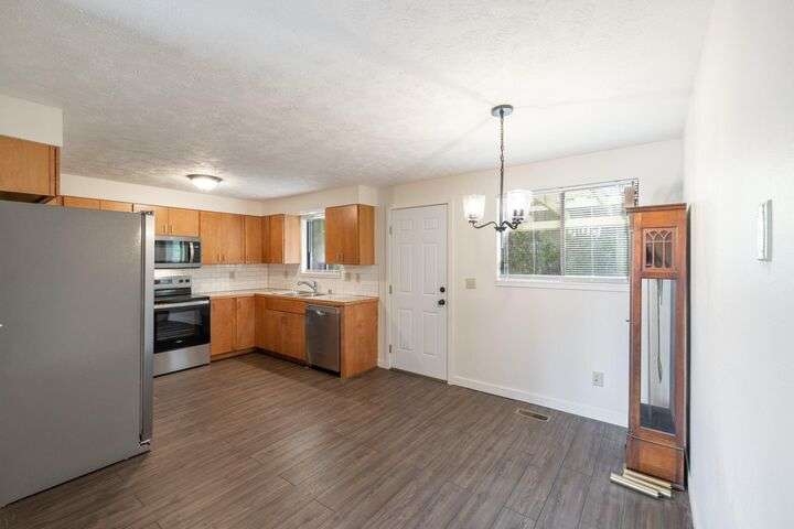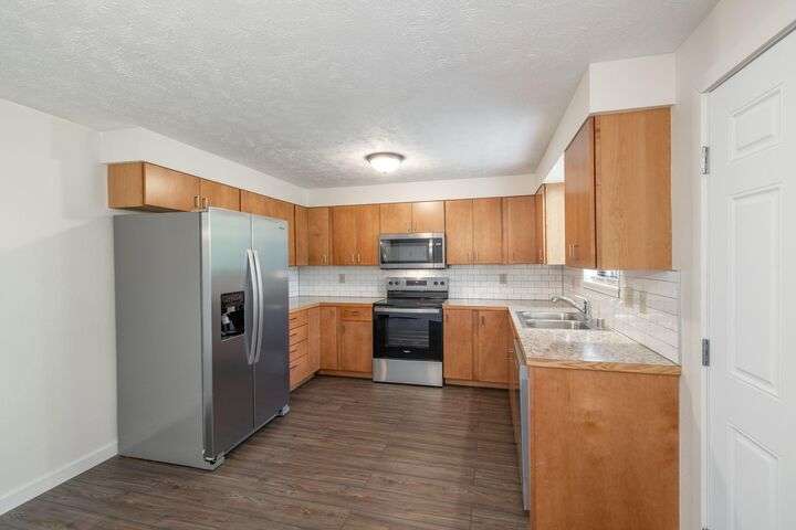 Must see this beautiful brand new interior remodel along with a brand new roof. Everything inside is tastefully updated, light, bright and new! New appliances, new LVP flooring in kitchen and baths, new subway tile showers and backsplashes, fresh paint and fresh trim, new window coverings! Everything brand new!! Oversized attached two car garage. Light, bright and open floor plan with ample space. Great layout with 5 bedrooms, 2 bath home with private fenced back yard just blocks to park and schools. Don't miss the best value in Cheney.