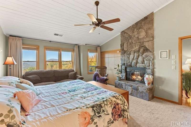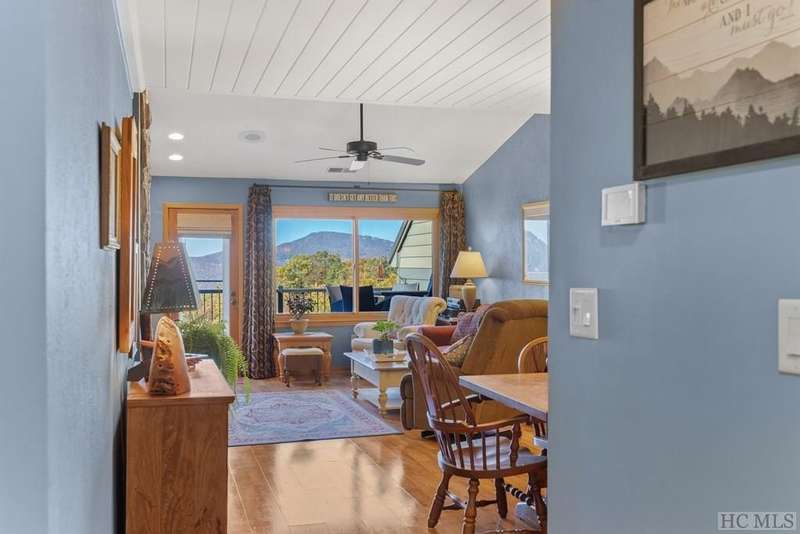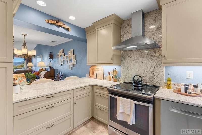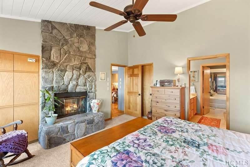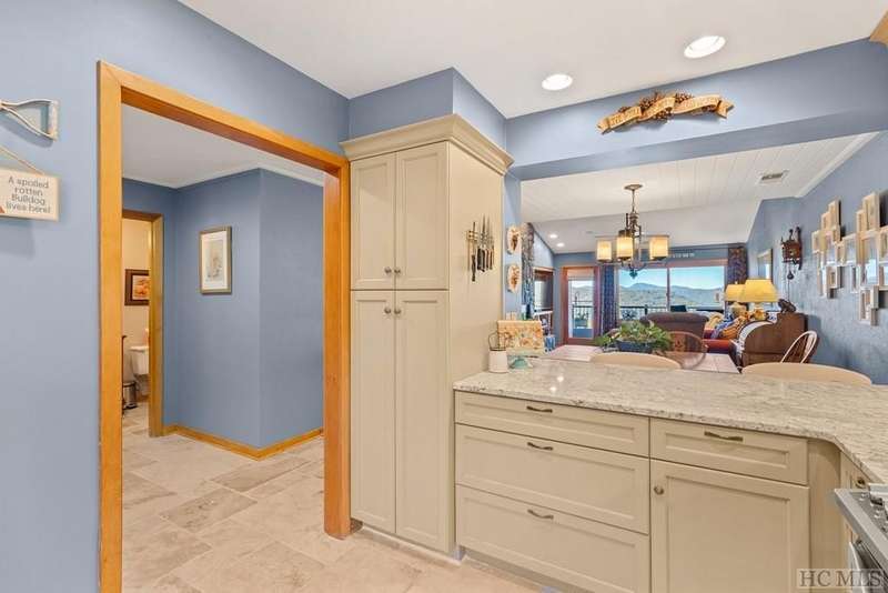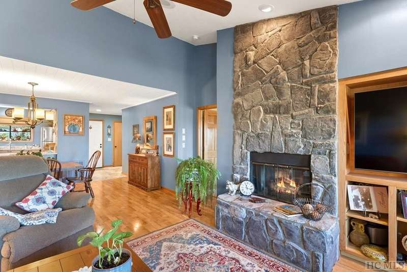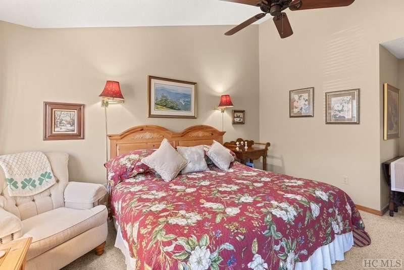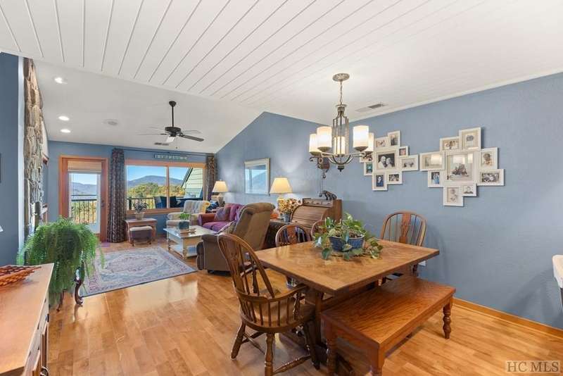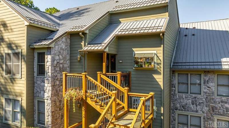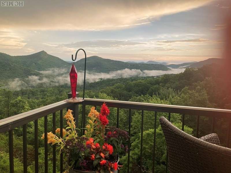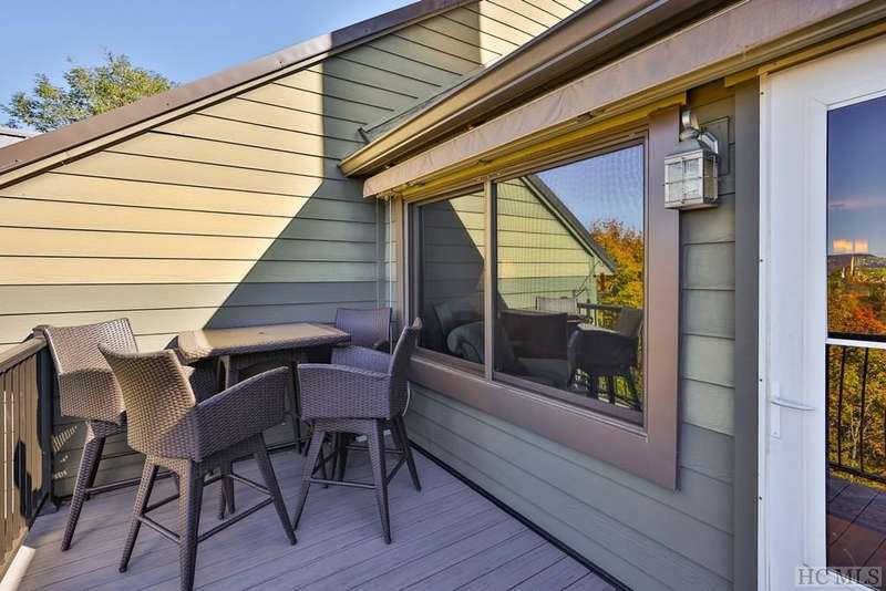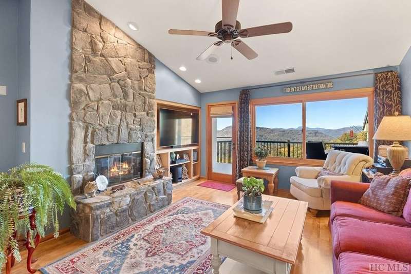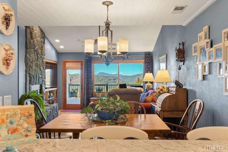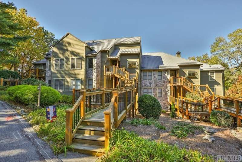 This charming partially furnished 2 bedroom, 2 bath condo, perched high on the mountain, offers breathtaking views. This home is bathed in natural light throughout, creating a warm & welcoming atmosphere for both owners & guests. The updated kitchen, features beautiful cabinetry, granite countertops & stainless steel appliances and a delightful garden window. The kitchen opens into the dining area & vaulted living room, where a stone fireplace creates a cozy ambiance & an ideal space for entertaining. The large primary bedroom offers spectacular mountain views, built-in cabinetry, & a stone fireplace. The spacious guest bedroom is situated at the front of the unit, providing privacy. Both bedrooms are designed with comfort & privacy in mind, w/walk-in closets making this condo perfect for year-round living & seasonal escapes. The newly refurbished balcony, complete with Trex flooring & new rails allow you to enjoy your morning coffee or evening drinks while gazing at the panoramic vistas of Bearpen, Sassafras, & Chimney mountains. This condo, located in the center stack of units offers one of the best views in the complex. The Eagle Ridge community consists of 6 meticulously maintained units & is part of the Sapphire Valley Master Association, providing access to an array of amenities including tennis, pickleball, a recreation center with indoor & outdoor pools, dining options, & more. A key benefit of this property is the rental policy, which allows rentals of no less than 7 days. This offers owners an excellent opportunity to earn rental income when they aren't using the unit full-time, making it a versatile investment for both personal enjoyment & financial gain. Additionally, the condo is conveniently located minutes from the shops & restaurants of Cashiers and only a short drive to Highlands. This hidden gem is truly a unique opportunity to own a piece of paradise, perched on a ridge where eagles soar, with spectacular mountain views as your daily backdrop. This property allows access to Sapphire Valley Master Association Amenities for Swimming, lake, community and activity center (fee is $1125.00 yearly)