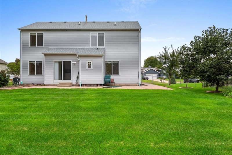 Discover this beautiful 1-owner single-family home featuring 3 spacious bedrooms + loft, 2.5 baths, a heated 2-car garage, and a full unfinished basement. The primary suite offers a private en-suite bath and walk-in closet for comfort and convenience. The kitchen boasts quartz countertops, a walk-in pantry, and BRAND NEW stainless steel appliances. 2nd floor laundry with new washer and dryer. Updates include custom brick driveway extensions for additional parking, two water heaters, water softener (as-is), fresh paint throughout, and no HOA. The garage is fully set up with two Tesla charging stations, painted flooring, and heat. Roof, siding, and water heaters are only 3 years old. The fenced yard is complete with a brick patio, fruit trees, and raised garden beds, perfect for growing your own organic produce. Plenty of natural light, a versatile loft, and an unfinished basement ready for your ideas make this home a must-see. Conveniently located just minutes from Prairie Ridge Drive Park, 5 minutes from Historic Woodstock Square, and close to highly rated schools.