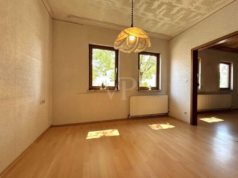 * Charming single-family half-timbered house with small garden and potential for expansion * For sale is a detached house built in 1913 on a plot of approx. 240 m². With a living space of approx. 113 m², this property offers enough space for small families. It is a property in need of renovation which, despite its age, offers interesting possibilities for lovers of half-timbered houses. Important modernization measures were carried out in the 1980s, during which the roof, windows and water and electrical systems were renewed. These measures form a valuable basis for further renovations. The gas heating system was installed in 1999. However, modernization of this heating system is recommended in order to raise it to the current energy standard. The layout of the rooms allows for flexible use in order to realize individual living concepts. The six rooms are spread over two floors. Four of these rooms can theoretically be used as bedrooms. There is a kitchen, a bathroom and a WC on each floor, as the house was originally used as a two-family home. It is therefore conceivable to combine the kitchen and bathroom on the first floor and in the attic to create a large kitchen on the first floor and a large bathroom in the attic. The garden with shed belonging to the house offers potential for individual design and can be transformed into an idyllic outdoor space with a little effort. A parking space in front of the house entrance completes the offer. The very quiet yet central location of the house is another impressive aspect. Shopping facilities, schools and local public transport are all within easy reach. The combination of historical flair and the possibility of individual design makes this house an exciting project for buyers with creative ideas and enthusiasm for craftsmanship. Please contact us for further information or to arrange a viewing.