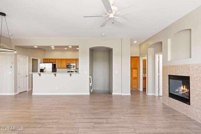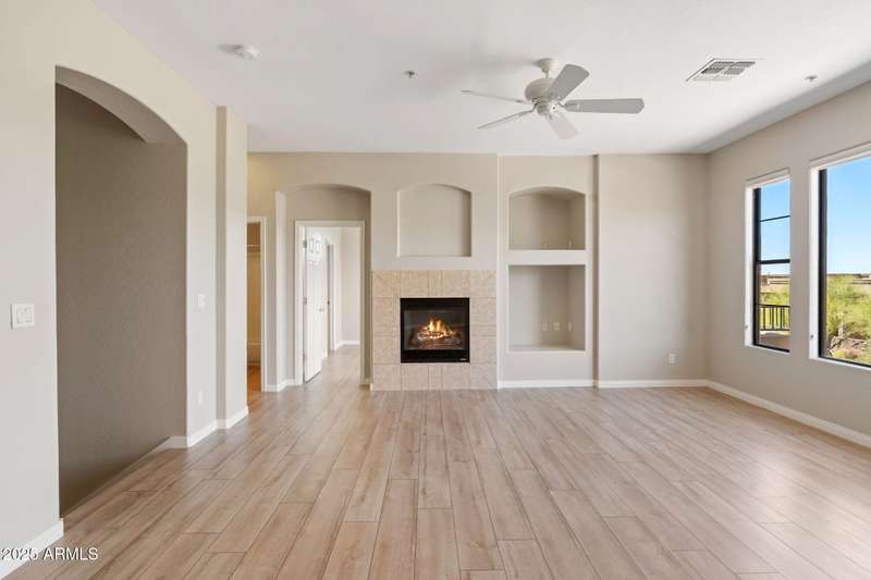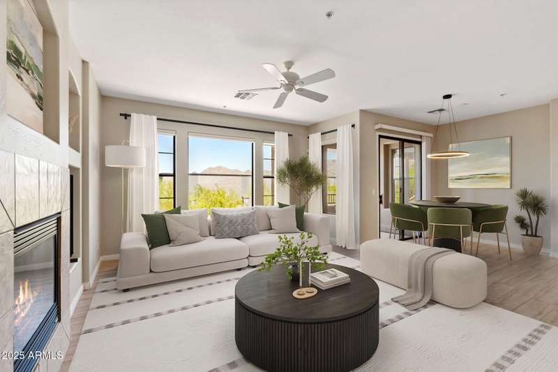 Freshly painted 2-bed, 2-bath townhome in the gated The Ridge at McDowell Mountain Ranch. This light-filled unit offers vinyl plank flooring throughout, a cozy gas fireplace, and a private balcony off the great room. The spacious kitchen includes stainless steel appliances and a breakfast bar for casual dining. The second bedroom features its own private balcony. Includes a one-car garage. Enjoy access to the community pool, club house, & updated fitness center, and nearby trails, shopping, and dining--perfect for active Scottsdale living. The Ridge community is nestled in a scenic setting with beautiful mountain views throughout the neighborhood. AC (2021) Water Heater (2021). Walk to shopping, restaurants & hiking trails! Award-winning McDowell Mountain Ranch is a premier master-planned community located in North Scottsdale.