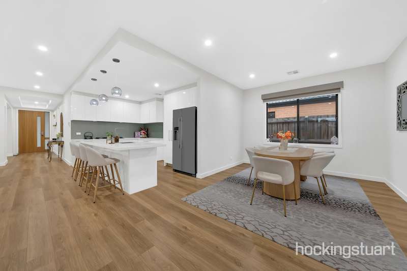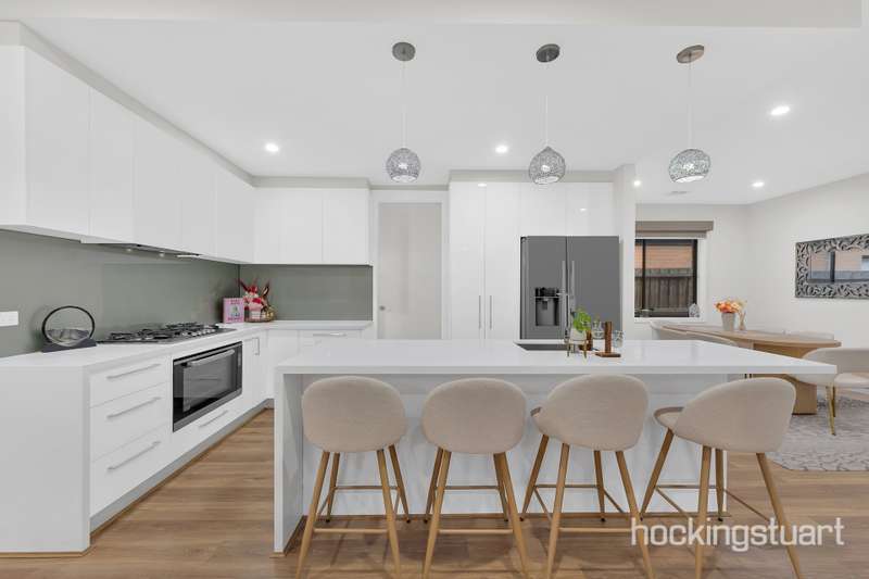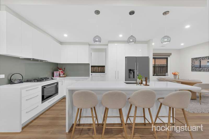 Luxury Meets Lifestyle in an Enviable Location. Step into a world of timeless elegance and architectural brilliance with this luxurious single-level masterpiece. Meticulously crafted to impress, this home blends sophisticated design with functional comfort, offering premium finishes and thoughtfully curated interiors throughout. From the moment you arrive, the striking custom façade and gallery-inspired entrance hall set the tone for what's to come-an awe-inspiring living experience designed for those who appreciate style, space, and serenity. The light-filled front lounge with soaring ceilings and ambient lighting sets a mood more indulgent than a five-star retreat. The central living and dining area is the heart of the home-anchored by a designer fitting and extending seamlessly to your outdoor oasis. The gourmet kitchen is a showstopper-straight out of a magazine. It boasts a large stone island bench, premium 900mm appliances, and an expansive butler's pantry-perfect for entertainers. The adjoining built-in bar area and outdoor kitchen in the alfresco provide the ultimate setup for effortless gatherings. Outdoor Entertaining, Redefined Entertain with ease in your beautifully landscaped yard with lush grass-perfect for hosting family BBQs or weekend celebrations. The exposed aggregate surfaces and fully fenced surrounds make this space as practical as it is stunning. Comfort for the Whole Family Enjoy the privacy and comfort of four oversized bedrooms-two with its own bathroom and walk-in robe. All bathrooms are fully tiled to the ceiling and feature elegant double vanities and high-end tapware. ________________________________________ Property Highlights: •One of the best pockets in Wollert with all amenities at doorstep •Two master bedrooms •Spacious open-plan living •Gourmet kitchen with stone island, 900mm appliances & butler's pantry with second set of appliances •Refrigerated heating and cooling •Designer bathrooms with stone benchtops •Quality window furnishings •High ceilings, high internal doors •Fully landscaped front and backyard with exposed aggregate & turf •Alarm system & concrete perimeter pathing •Upgraded laundry with backyard access