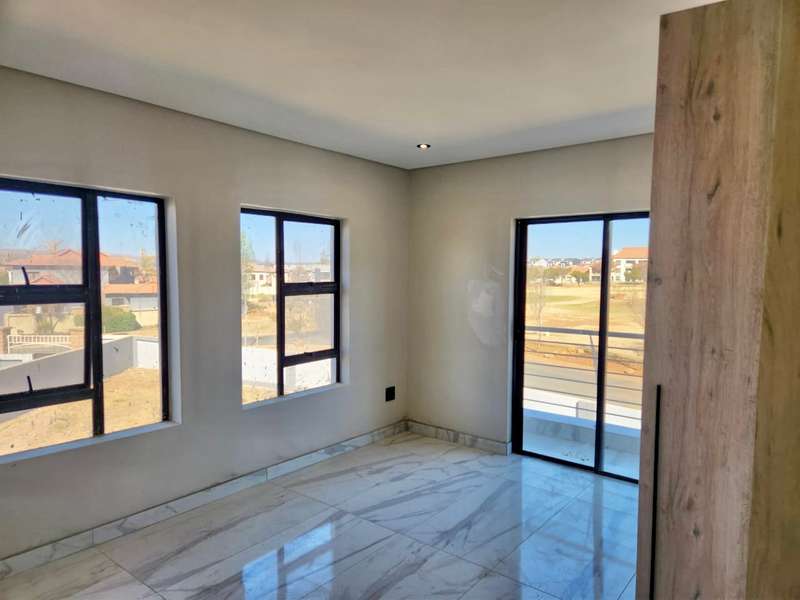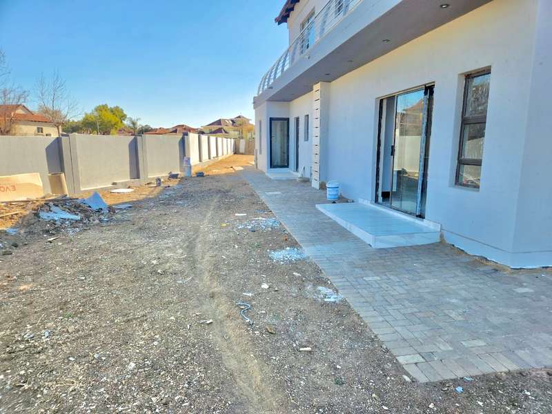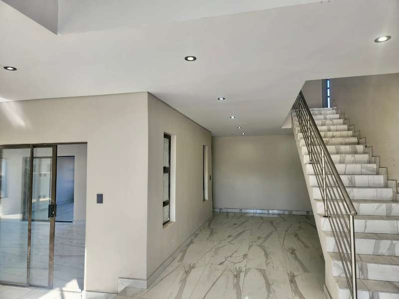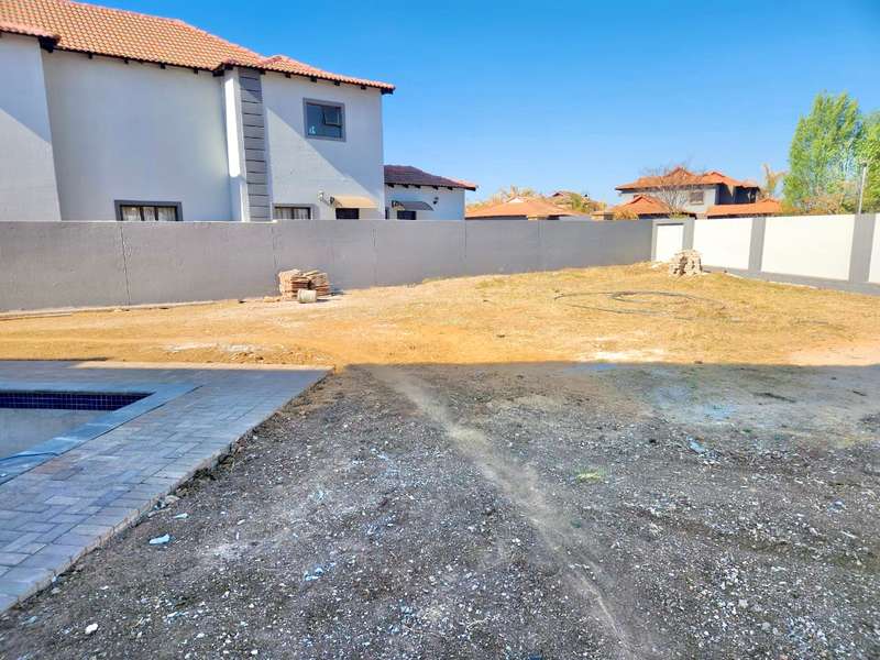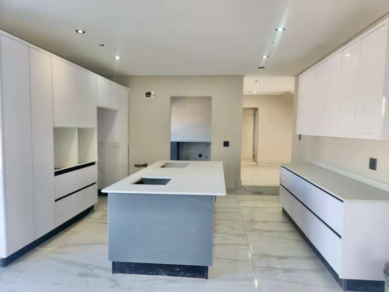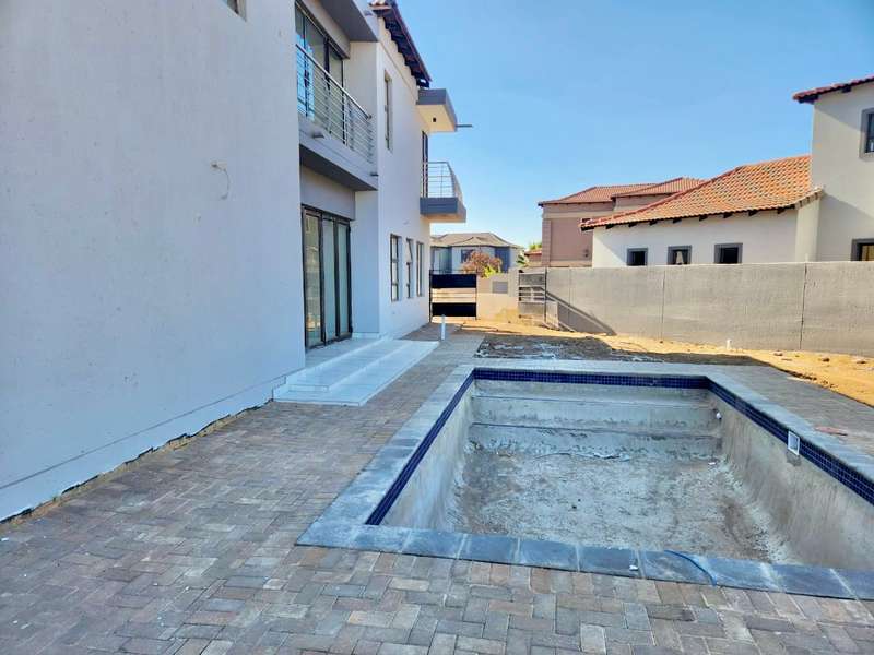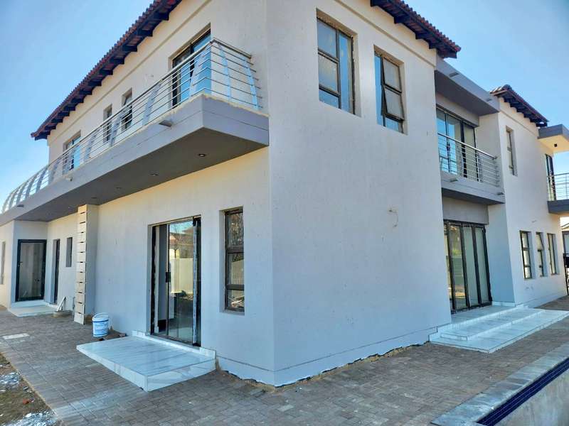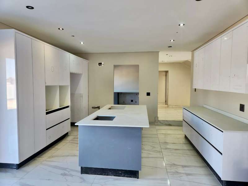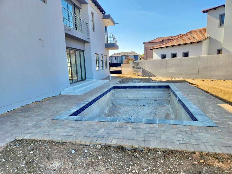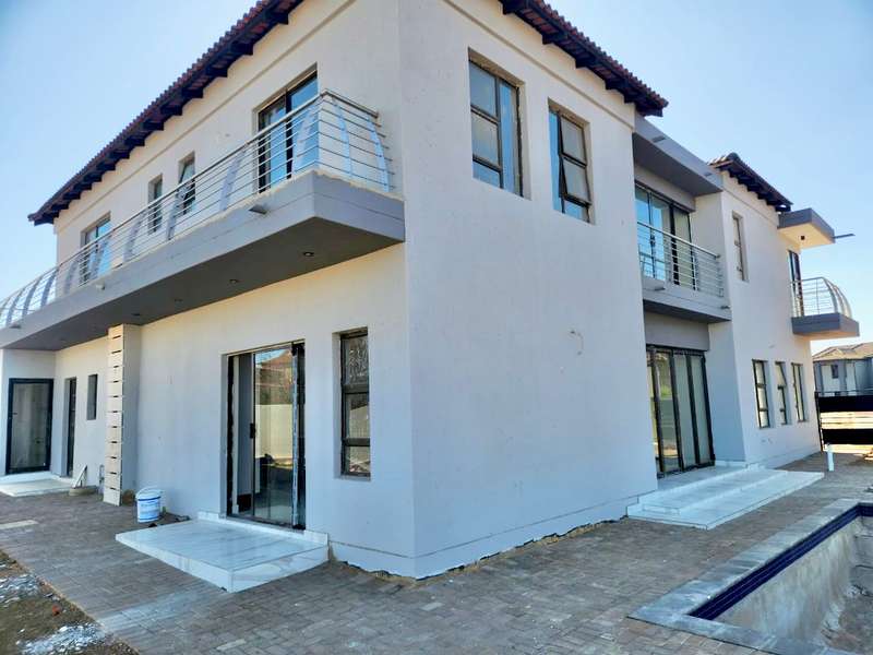 This newly built 5-bedroom, 5-bathroom home is almost ready, with the final touches being added—grab it fresh! The property features expansive open-plan living spaces and modern finishes throughout. The ultra-modern kitchen, complete with a separate scullery, laundry, and utility kitchen, is designed to impress even the most discerning buyers. Elegant, marble-like tiles flow seamlessly through the home, enhancing its luxurious appeal, while the first floor offers spectacular views. The outdoor area is perfect for entertaining, boasting a sparkling pool and a built-in braai area. Please note, the current photos are from the building phase. The completed masterpiece is now available for sale.