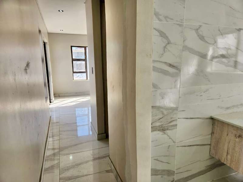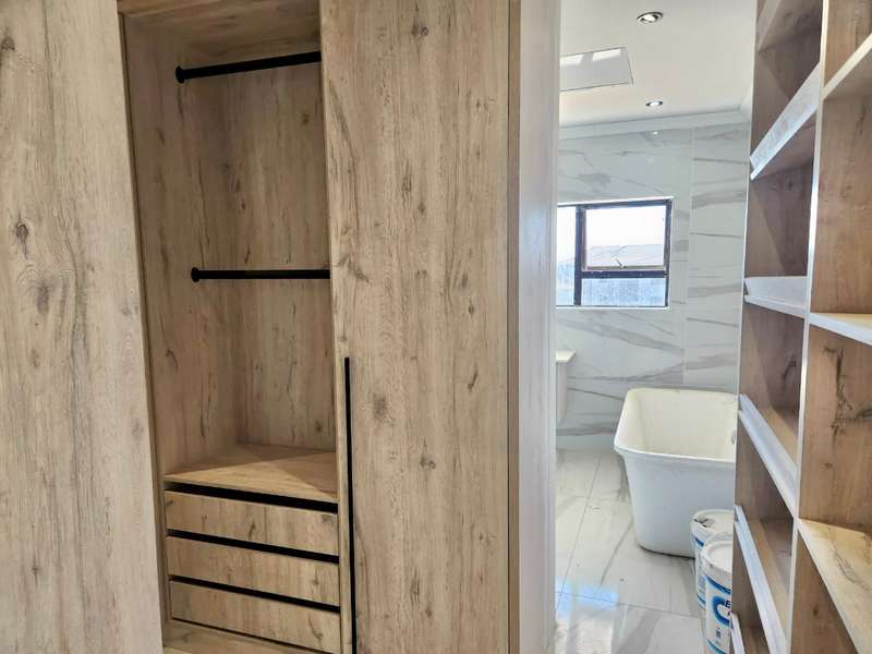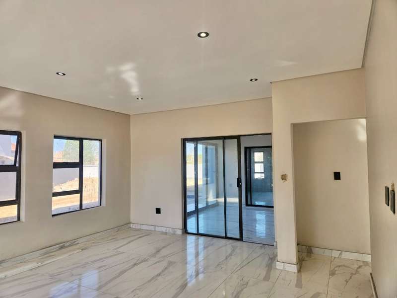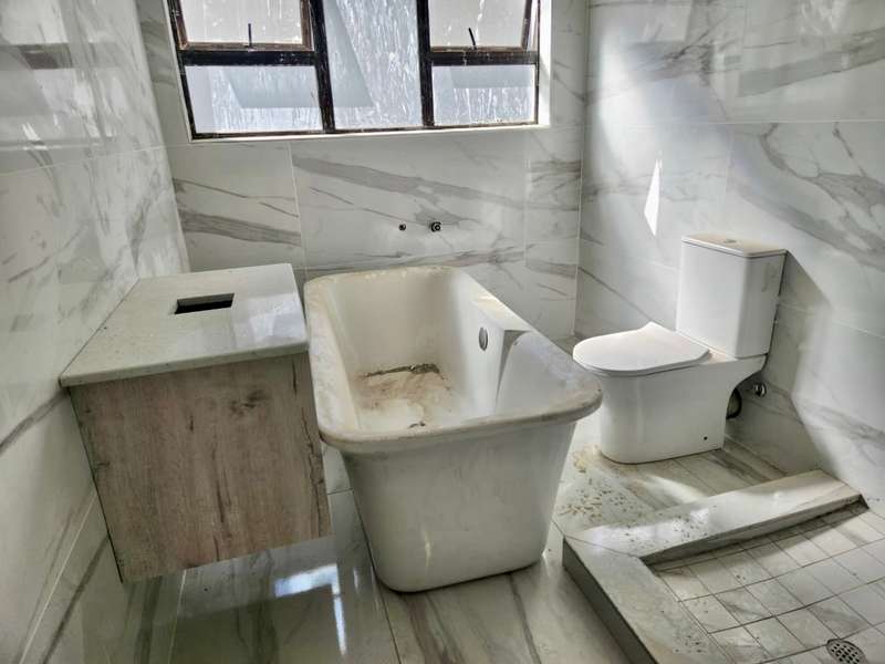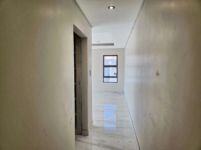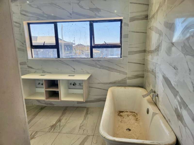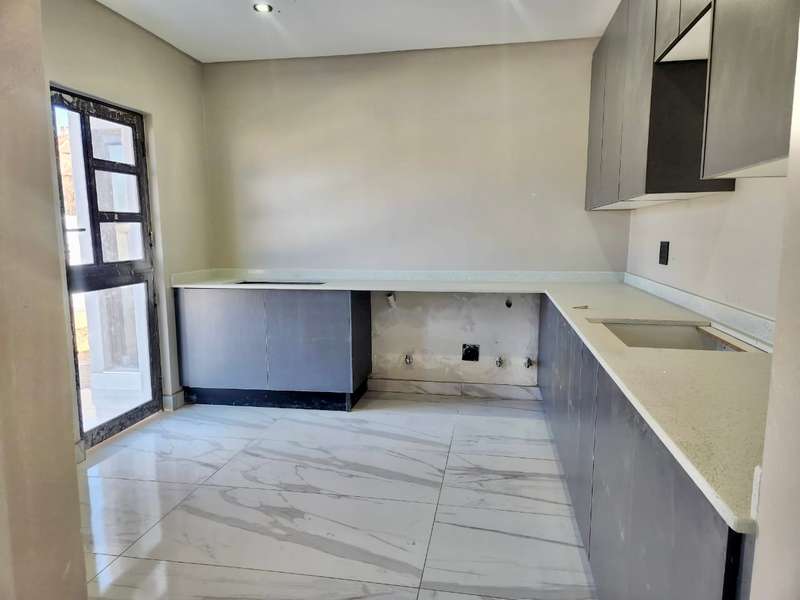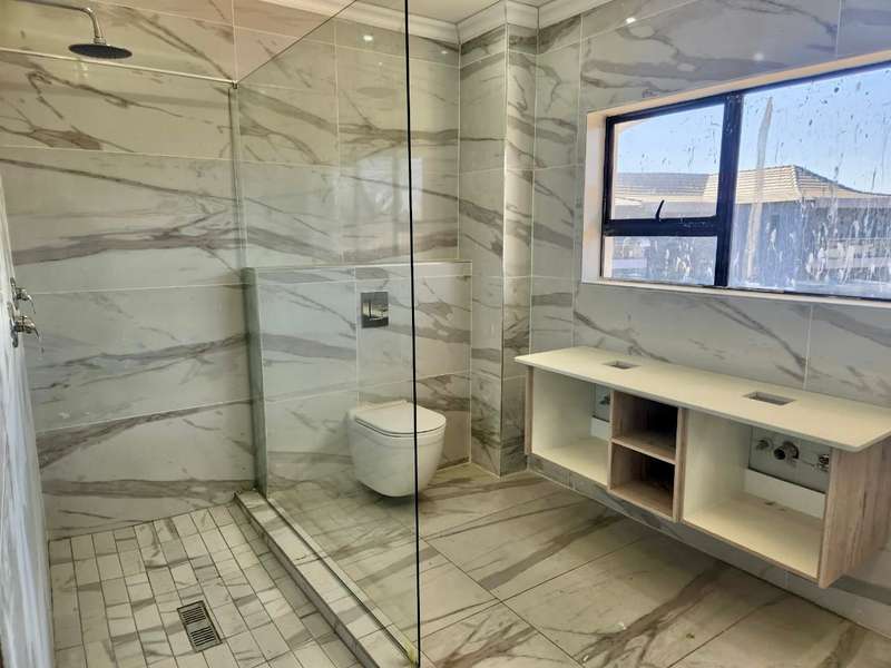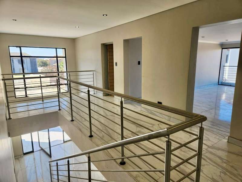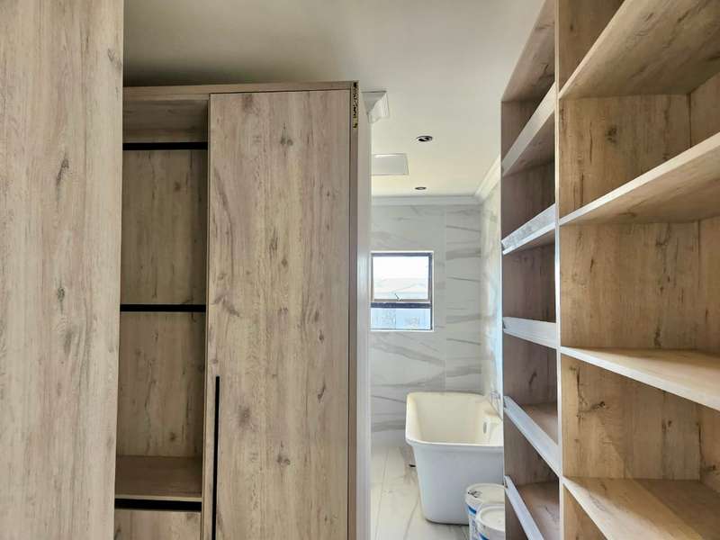 This newly built 5-bedroom, 5-bathroom home is almost ready, with the final touches being added—grab it fresh! The property features expansive open-plan living spaces and modern finishes throughout. The ultra-modern kitchen, complete with a separate scullery, laundry, and utility kitchen, is designed to impress even the most discerning buyers. Elegant, marble-like tiles flow seamlessly through the home, enhancing its luxurious appeal, while the first floor offers spectacular views. The outdoor area is perfect for entertaining, boasting a sparkling pool and a built-in braai area. Please note, the current photos are from the building phase. The completed masterpiece is now available for sale.