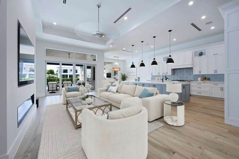 Experience coastal living in this 2022 custom-built waterfront estate in prestigious North Palm Beach. Perfectly situated on 80 feet of direct water frontage with a brand-new seawall, private dock, and 24,000 lb. lift, this residence offers effortless access to the Intracoastal and Atlantic Ocean; ideal for yachting, sport fishing, or sunset cruising. Designed with timeless elegance and modern sophistication, the home features 4 bedrooms, 3.5 baths, a private study, and an oversized 2-car garage. The chef's kitchen, complete with a massive pantry and top-tier finishes, anchors the open-concept living space with soaring 12-foot ceilings, creating an atmosphere of understated grandeur. The serene primary suite is a private sanctuary with spa-inspired details and sweeping view of the water.